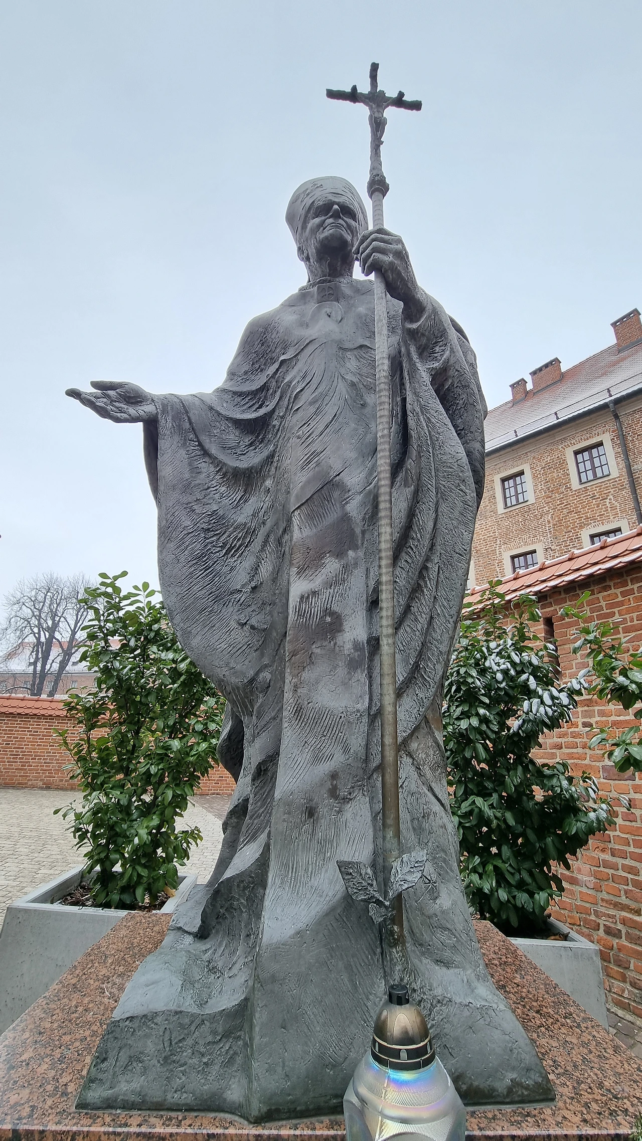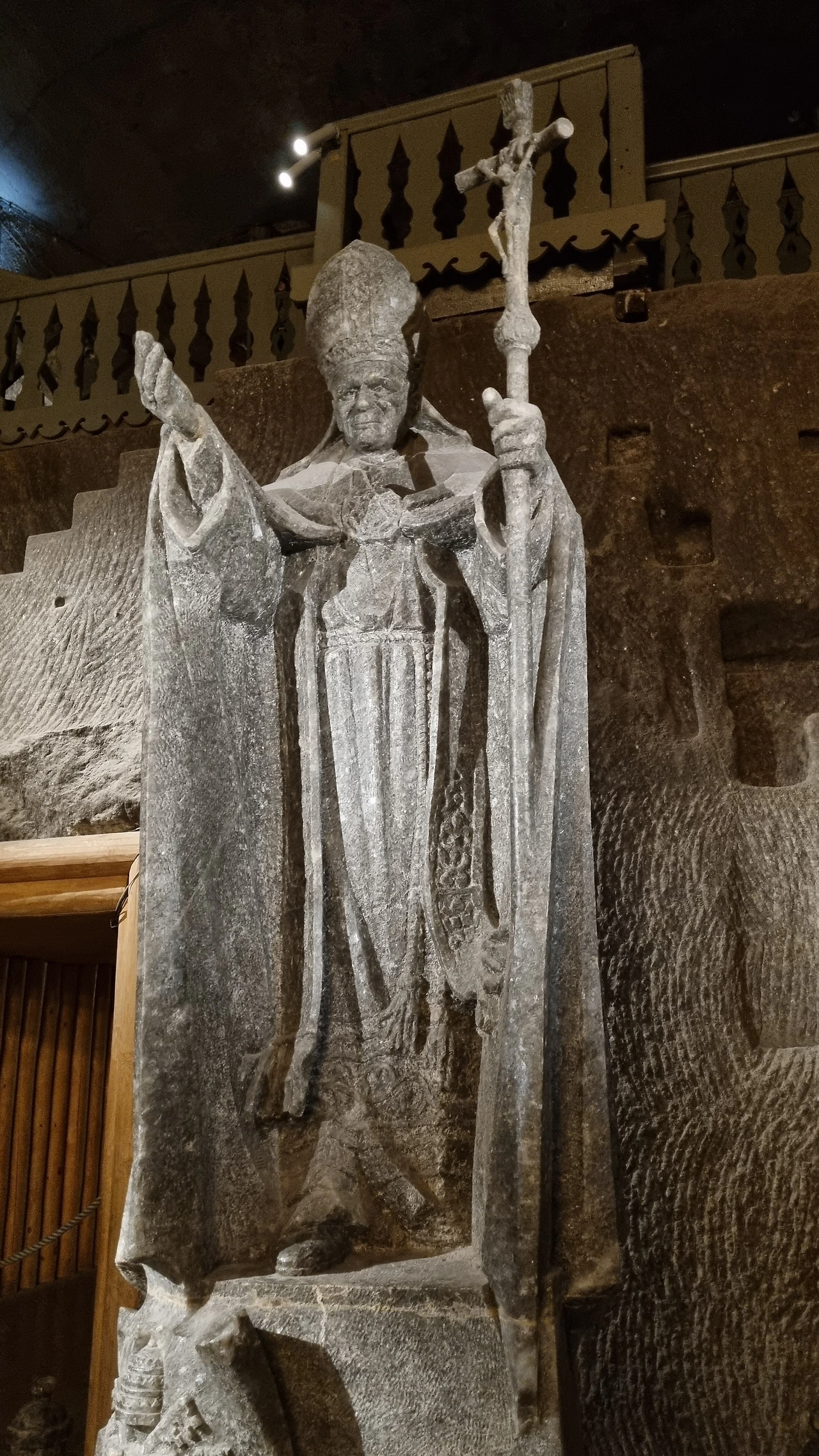 왼쪽은 바벨대성당 앞, 오른쪽은소금광산 안, 어딜가나 교황님이 그들 곁에 계시는 구나 싶었다 성당을 빠져나와 보이는 교황의 모습! 웬만한 국가수장보다 더 화려한 교황관, 지팡이, 반지, 발목까지 덮을 정도로 긴 의복,