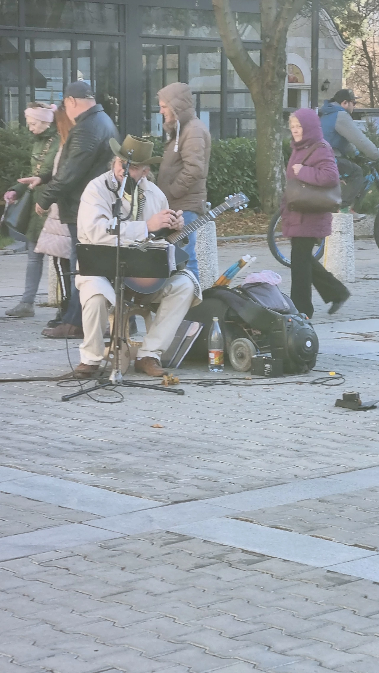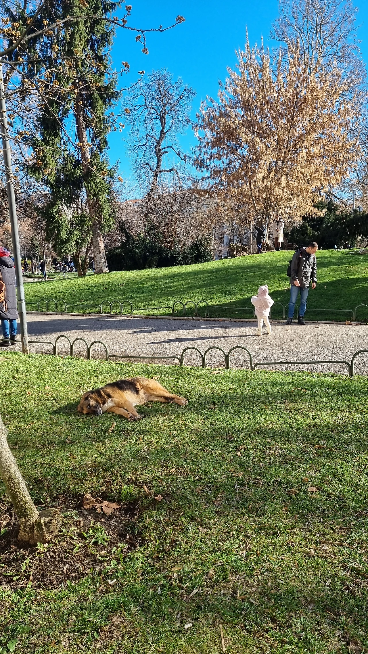 먹보 김남매의 살찌는 소리가 들린다~~ 산책 나와보니 공원에는 길거리 악사와 평화롭게 잠든 개가 보인다.(설마 죽은거 아니지?)