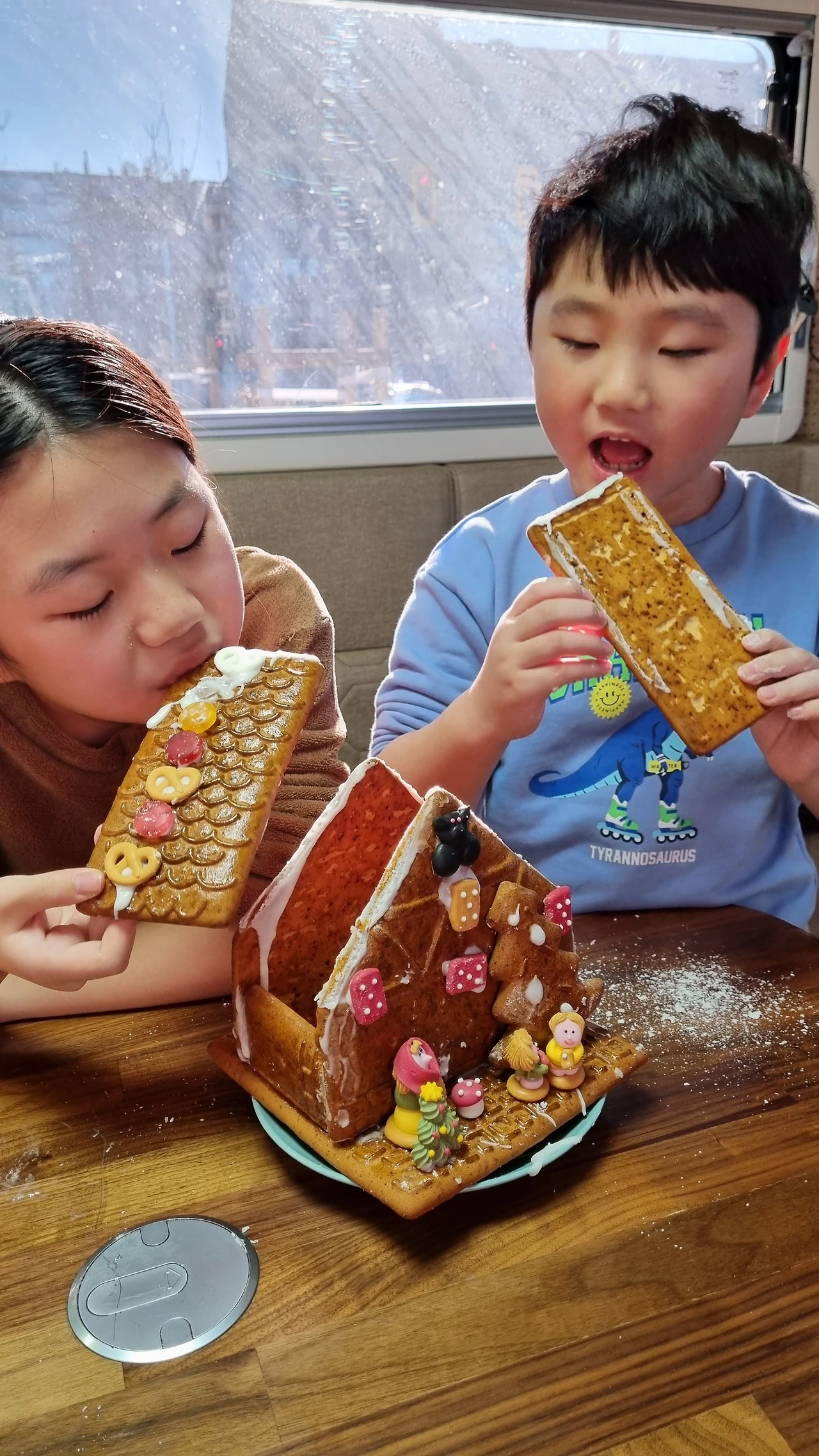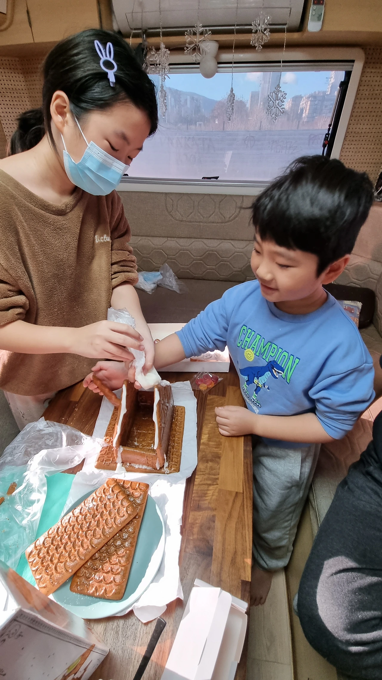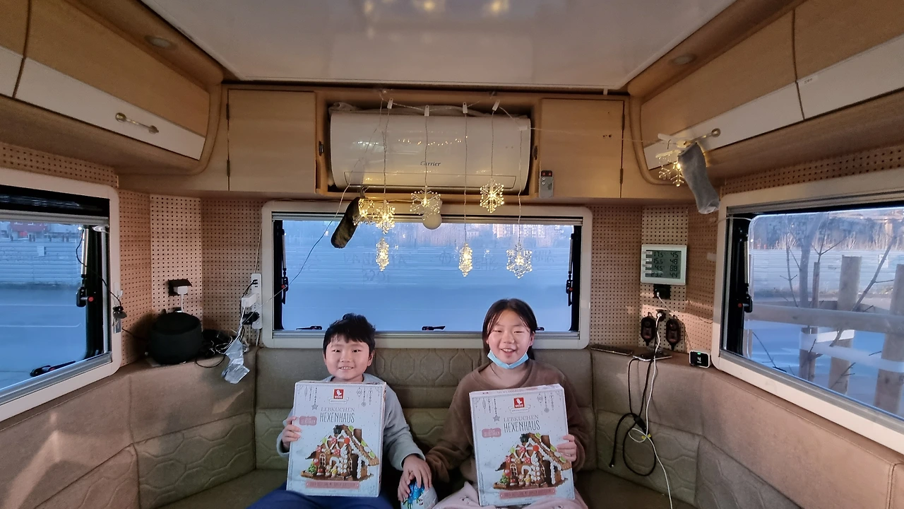 "근데 산타할아버지가 어디로 들어오시려나. 우리 집에(캠핑차) 굴뚝도 없고 문이 단단히 잠겼는데 말이지.."