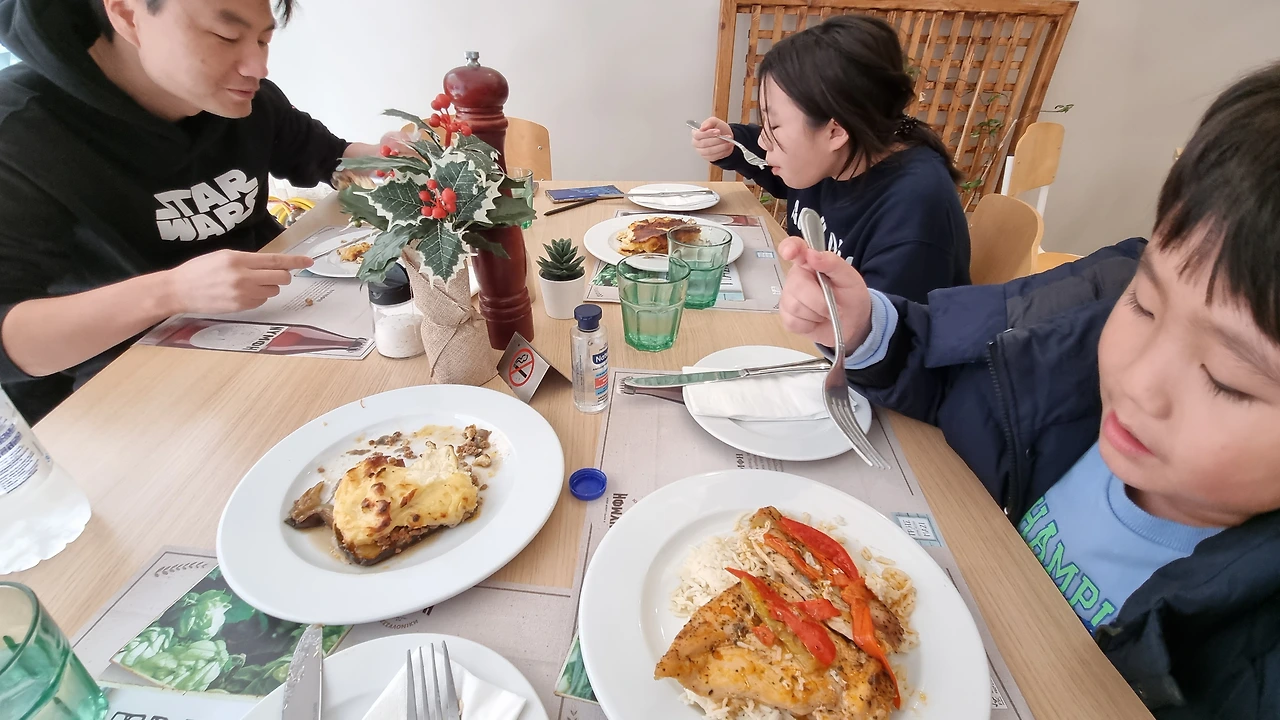 보조석에서 먹는 치땅은 나의 행복간식이다(김기사님 놀리기) 식당 아주머님이 한국 드라마 넘 재밌다고 덤을 줬다. 넷이 2만원에 맛도 양도 맘에 쏙! ♡차에서 사는 가족의 유랑경로♡