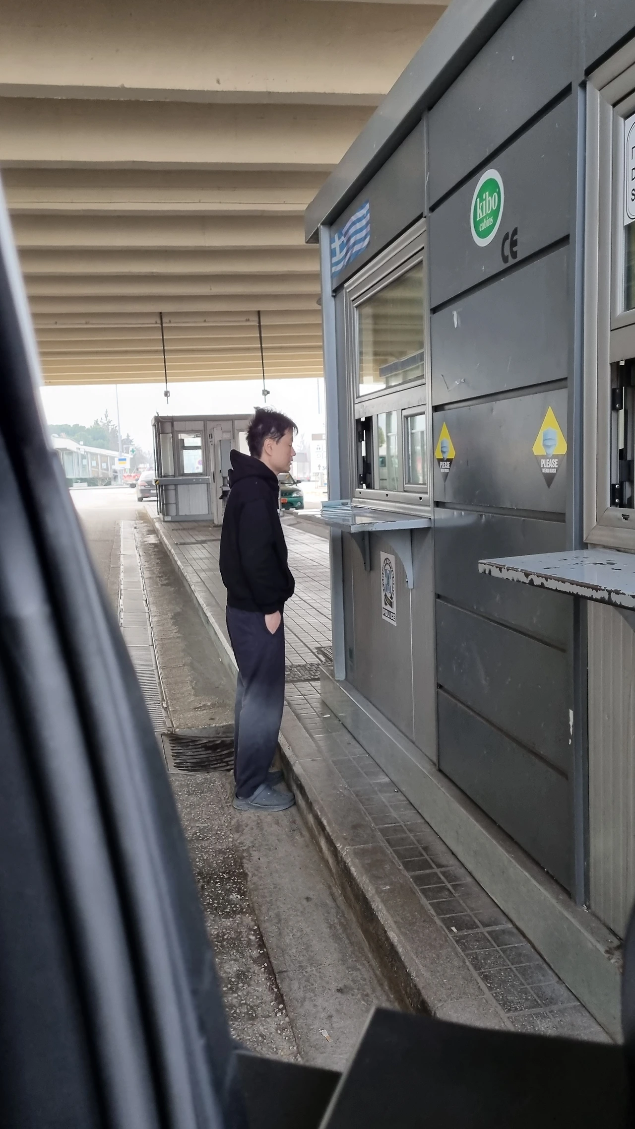 불가리아에서 그리스로 입국심사 중이다(근데 요상하다. 심사관이 나랑 애들은 나와 보라고도 하지 않는다. 열명 데리고 타도 모를듯!)
