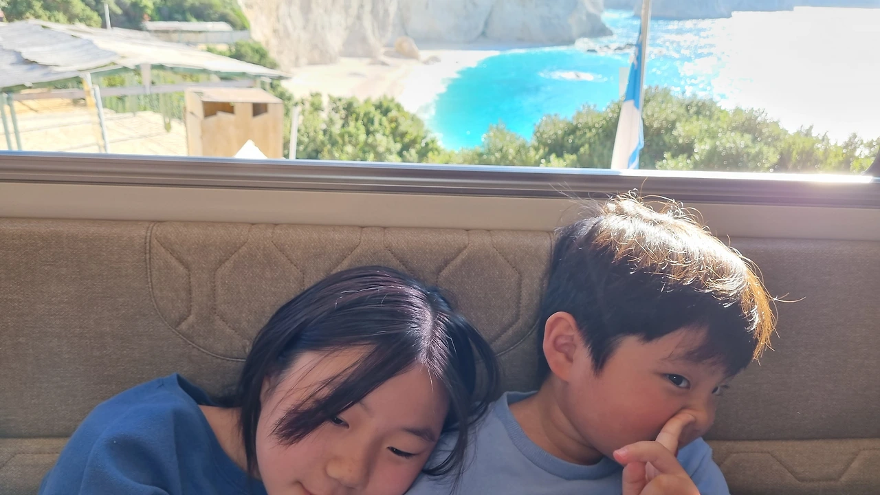 두 어린이가 너무 커버렸나보다. 내 수영복을 입고 있다 (내 수영복이 너희 취향인거니?)