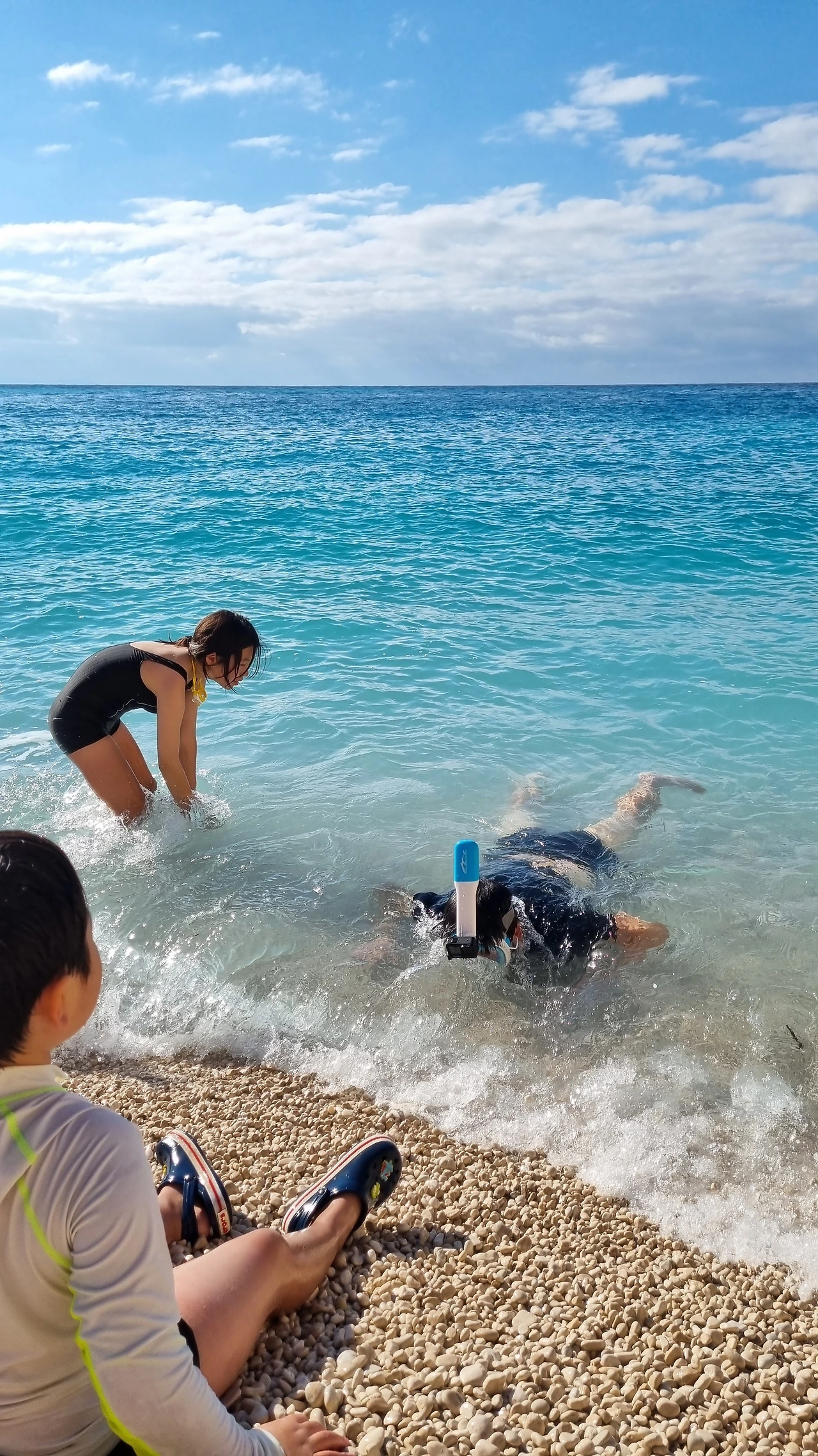 봐봐! 저거 바닷물 아니라니까~~누가 어젯밤에 투명한 청록색 물감 풀어놓은거야.