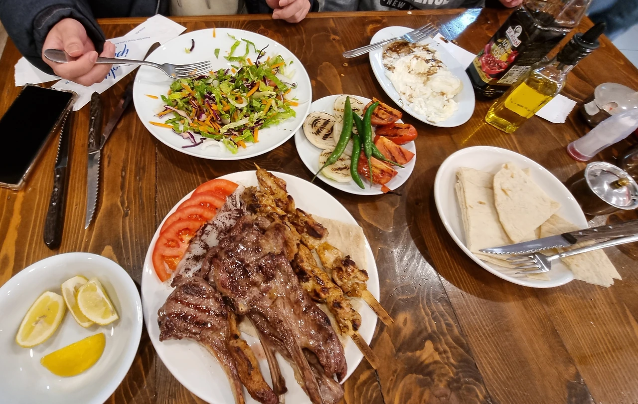 양고기, 닭꼬치, 샐러드 4인 250리라(17000원)