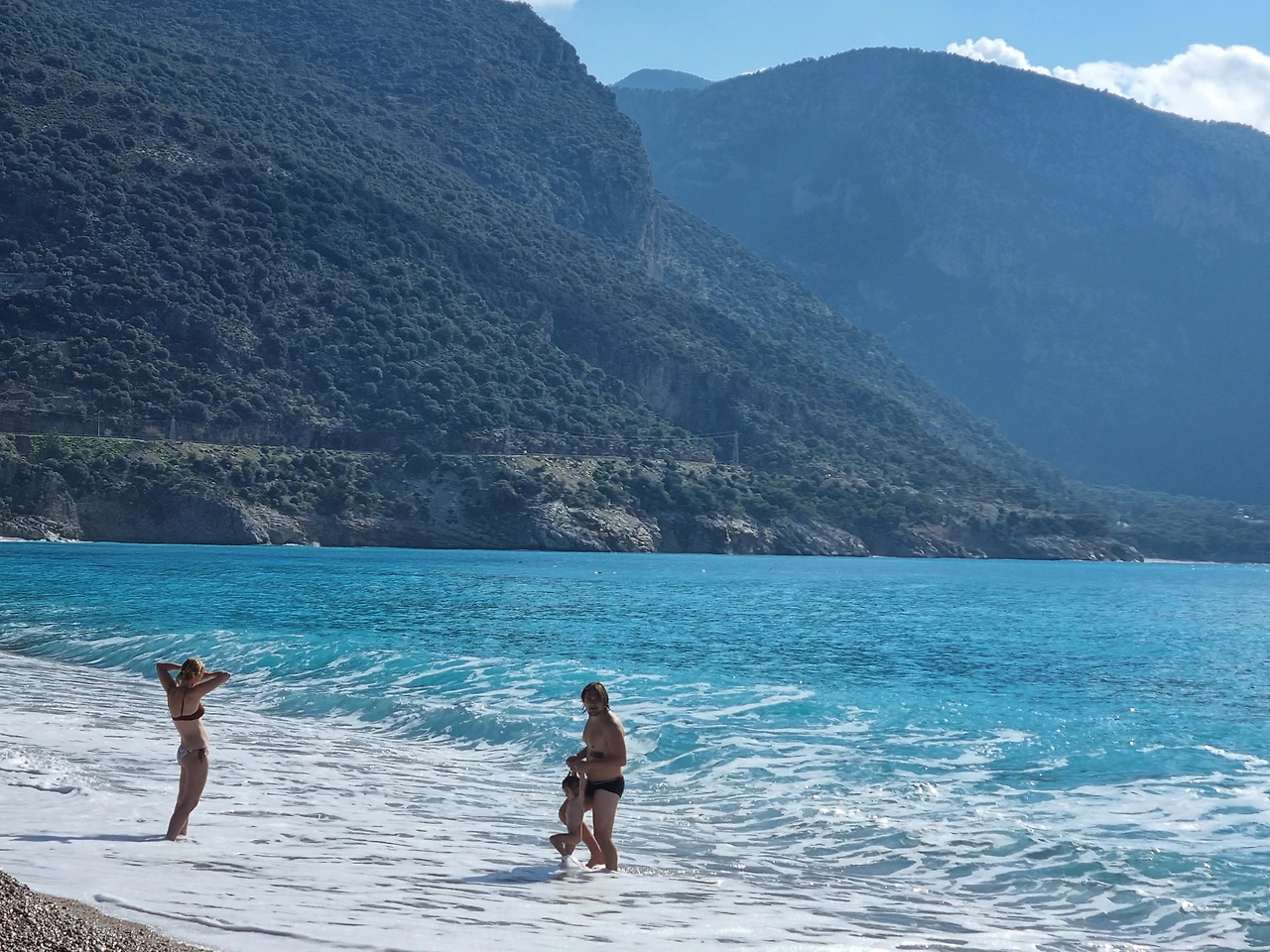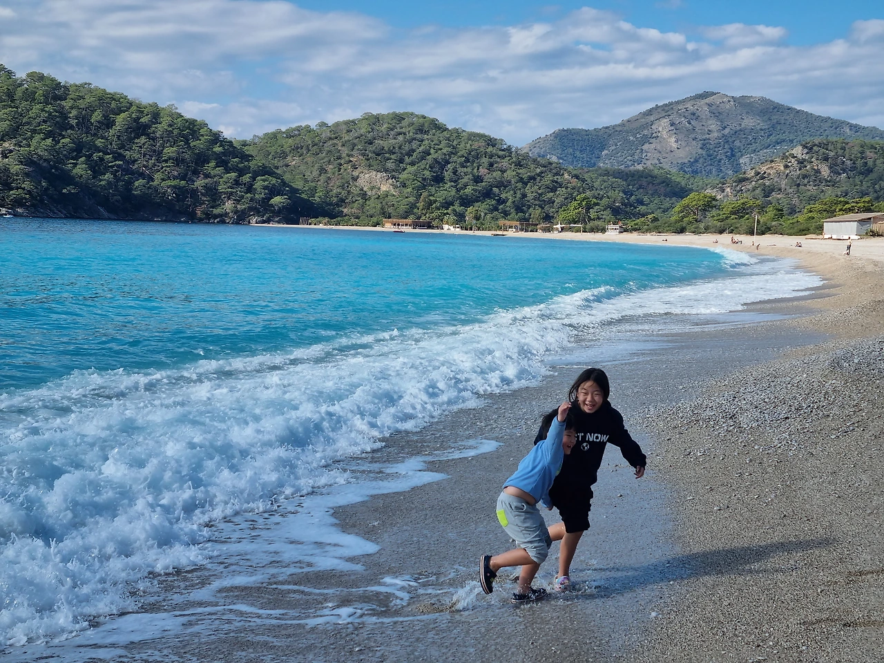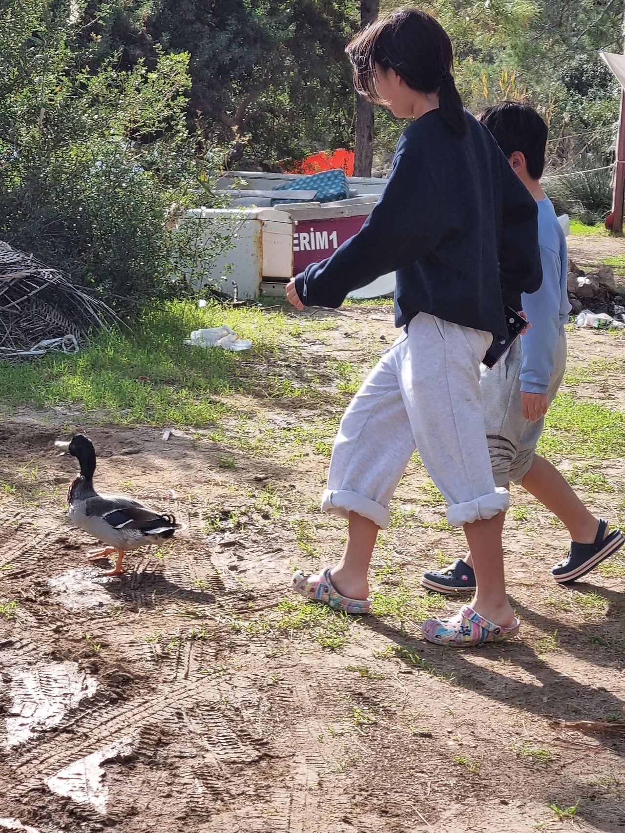 그리스는 가끔 옥색인데 터키는 대놓고 옥색바다다. 짬짜면도 아니고 바다가 둘로 나눠보인다./ 김남매가 하도 쫓아다녀서 오리가 귀찮아하는거 같다.
