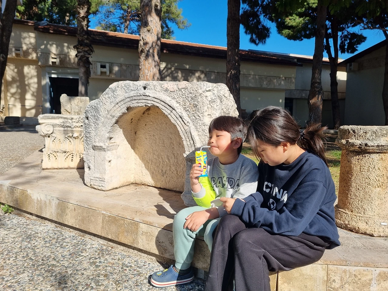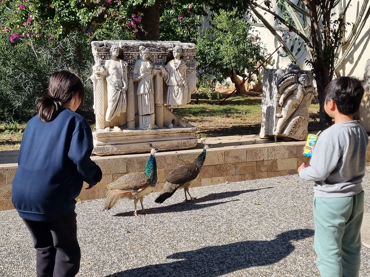 "엄마.이렇게 어마어마한 햇볕 아래서 초코우유까지 먹으니 몸이 흐물흐물해져. 나 녹아버릴거 같아." 박물관에서 도도하게 산책중인 공작새/ 안탈리아 해변가보다 신선들이 사는 것처럼 보이는 저 먼 산이 더 탐난다.