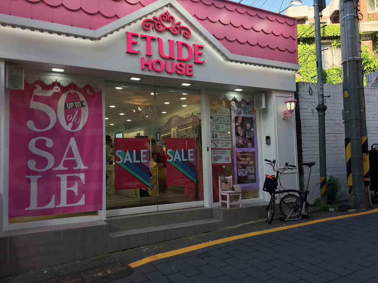 홍제천을 따라 내려와 연남동을 거쳐 동교동삼거리에서 먼저 신촌으로 길을 잡았다. 주말의 신촌은 생각보다 활기찼다. 에뛰드하우스가 위치한 거리는 신촌현대백화점이 접한 메인 거리에 있었다. 차량을 통제하고 보행자 전용으로 거리 전체가 광장이 되어 있었다. 부처님오신날 관련 이벤트를 거리에서 진행하고 있어 더욱 북적여 보였다.