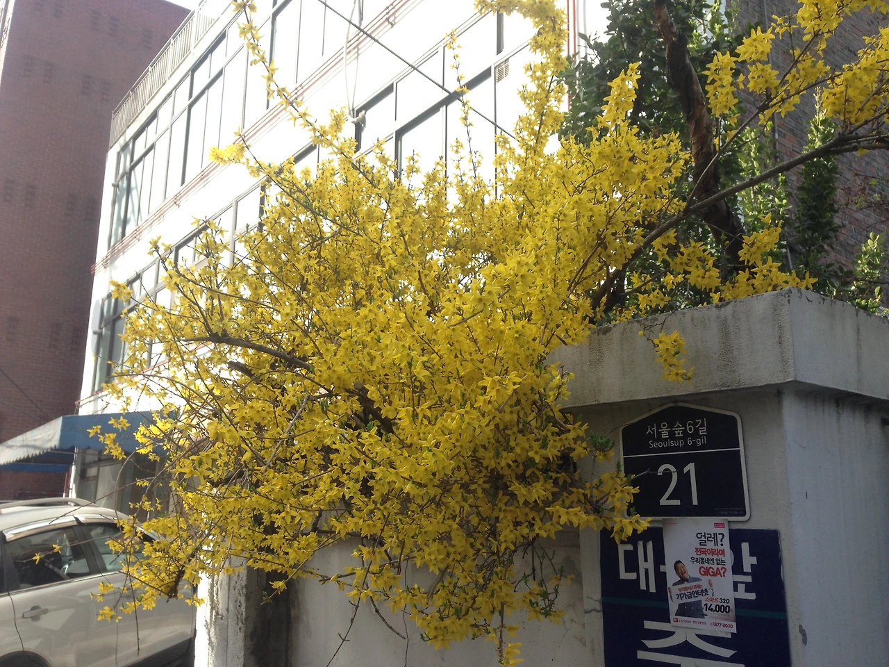 동네를 느낄 여유가 생기기 시작한 건 다음해 봄이 오고, 주택단지만 있던 골목에 생기가 돌기 시작했을 때였다. 봄은 서울숲이 가장 바쁜 시간이다. 4월중순이 지나면 주말에 하루 2만명 이상의 사람들이 나들이를 온다. 평일에는 성수기에도 비교적 한산한 편이다. 봄은 골목길에도 꽃들이 가득하다. 서울숲2길을 지날 때면 꼼꼼히 가꾼 화분을 만날 수 있다. 그 댁을 아침에 지날 때면 늘 물을 주고 화분을 돌보고 계시는 어르신을 만날 수 있다. 11시반 무렵이면 어김없이 줄지어 서울숲으로 산책을 나가는 어린이집 아이들의 대열을 만날 수 있다. 둘씩 손을 꼭 붙잡고 골목을 걸어가는 모습이 그렇게 앙증맞을 수가 없다.