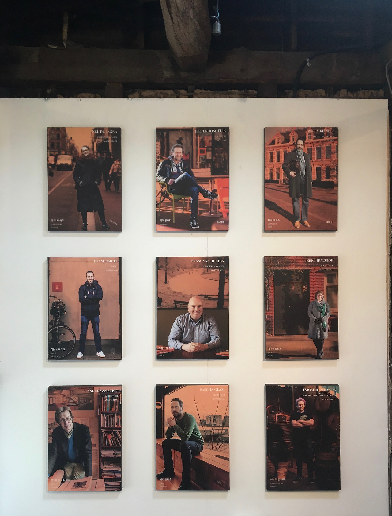 도시재생의 과정과 결과가 나타나는 데에 많은 요소들이 있겠지만, 이번 전시는 제목에서 드러나는 것과 같이 '도시를 만드는 사람들'에 집중했다. 사람들과의 이야기를 전시로 담았다. 7개의 지역 사례에 9명의 사람들의 이야기를 전시로 담았다. 2층으로 계단을 오르다 보면, 계단참 벽면에 그들의 사진이 보였다.