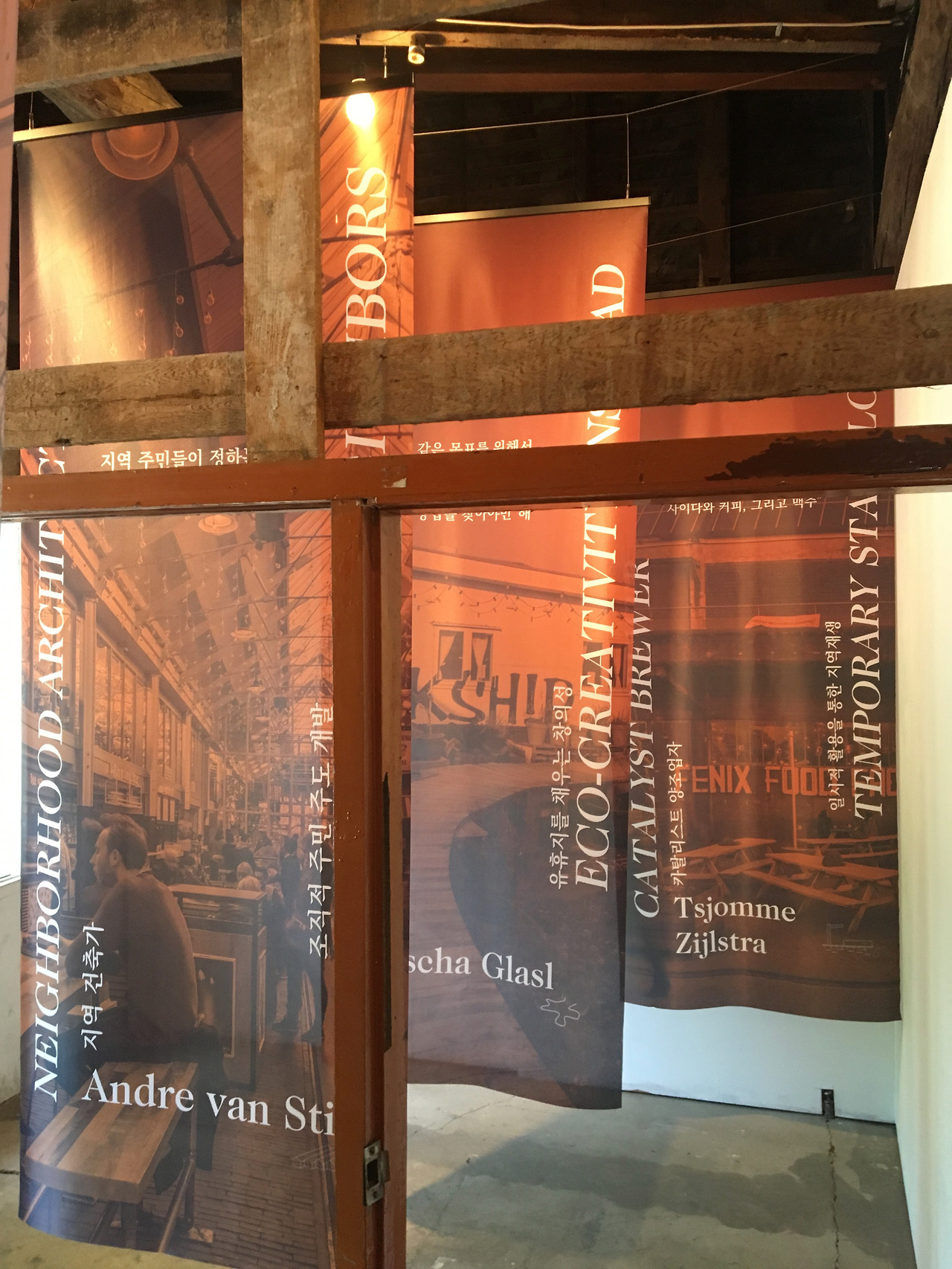 필자가 참석했던 1회, 4회 워크샵 공유회 때 네덜란드 암스테르담, 로테르담 사례를 접하면서 흥미로웠던 점은 민간이나 공공(행정)이나 모두 긴 호흡을 가지고 지역을 바라보며 개발을 해 나가는 끈기와 협업하고자 하는 의지가 충만했다는 점이다. 예를 들어, 이번 전시에도 등장하는 로테르담의 페닉스(Fenix) 창고 부지 프로젝트를 보자. 로테르담 시정부에서 부지를 매입했고, 대형 개발회사 Hejimans에서 부지를 임대해서 주택개발사업이라는 계획을 세웠다. 이 회사는 비영리단체가 아닌 수익을 내기 위해 존재하는 민간기업이다. Fenix Food Factory를 기획하고, 앞으로 만들어질 주택개발을 진행하는데 이미 15년이라는 시간 동안 온전히 투자 목적으로 다양한 시도를 진행하고 있었다. 물론, 손해 보려고 진행하고 있지 않겠지만, 긴 호흡을 가지고 시정부를 설득하고 크리에이터들과 적극적으로 협력해 가는 과정이 흥미로웠다.