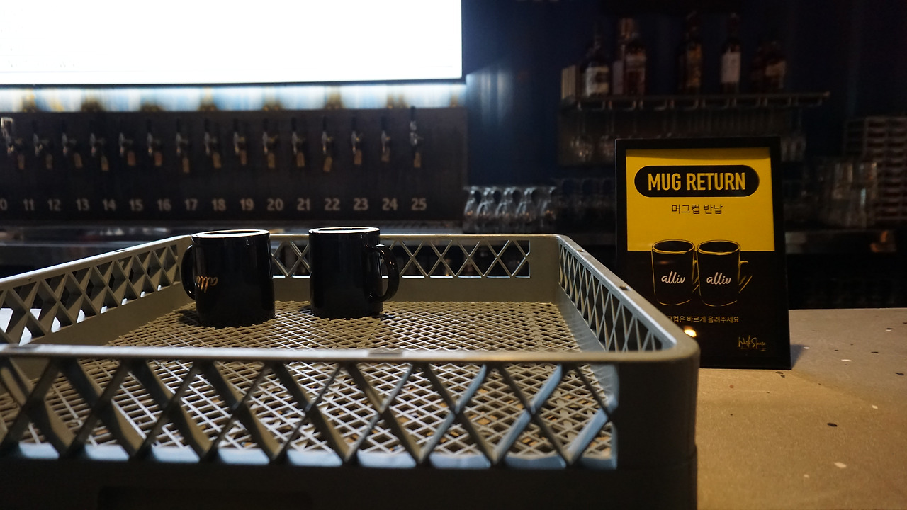 사용하신 머그컵은 뒤집어서 반납(RETURN) 박스에 올려놓으시면 된다.