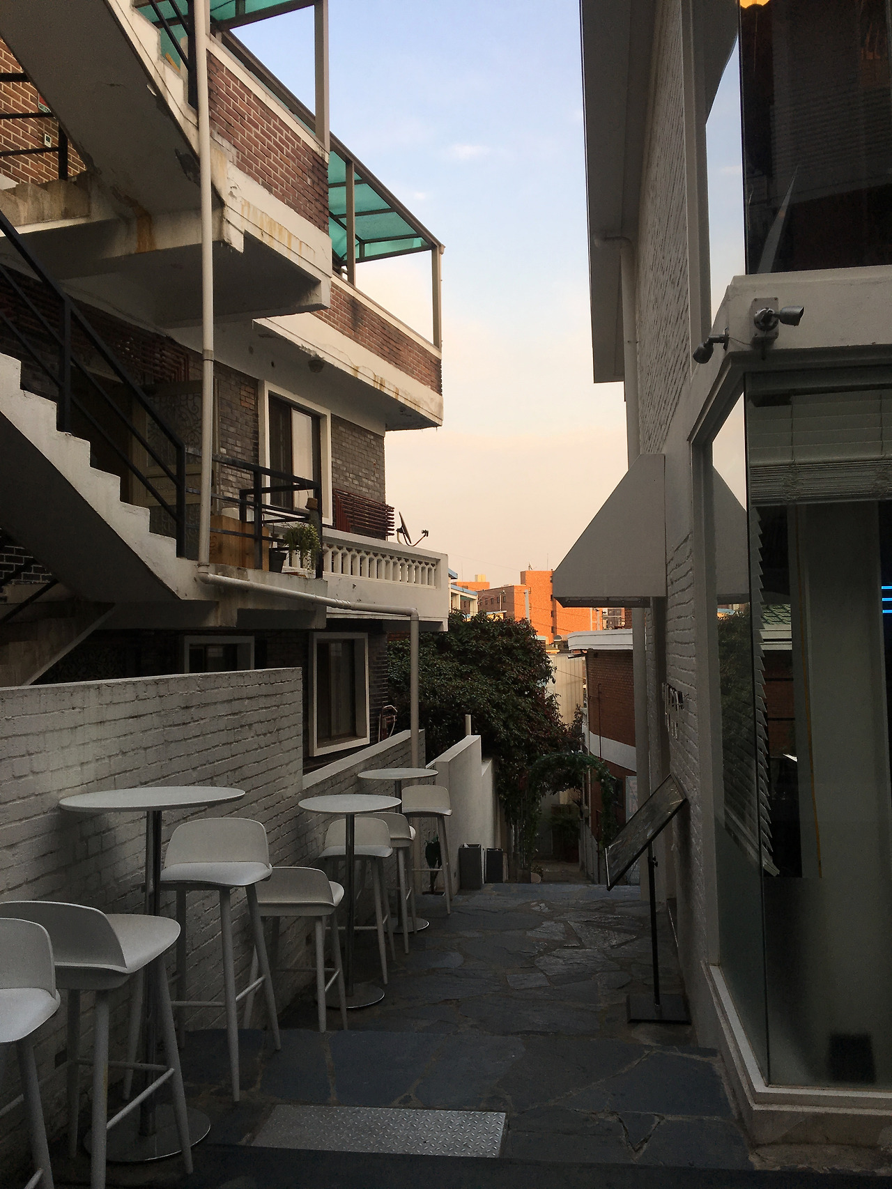 이태원역 1번출구에서 나와 해밀턴호텔을 지나고 가파른 경사의 언덕 골목길을 오르기 시작했다. 이 골목길은 예전에는 유명 방송인 홍석천씨가 운영하던 레스토랑이 있어 이태원 상권의 한 획을 그었던 길이라 했다. 다양한 상점과 레스토랑들이 줄지어 있는 골목을 지나 그 열기가 살짝 식어보이는 조용한 골목길에 닿았다.