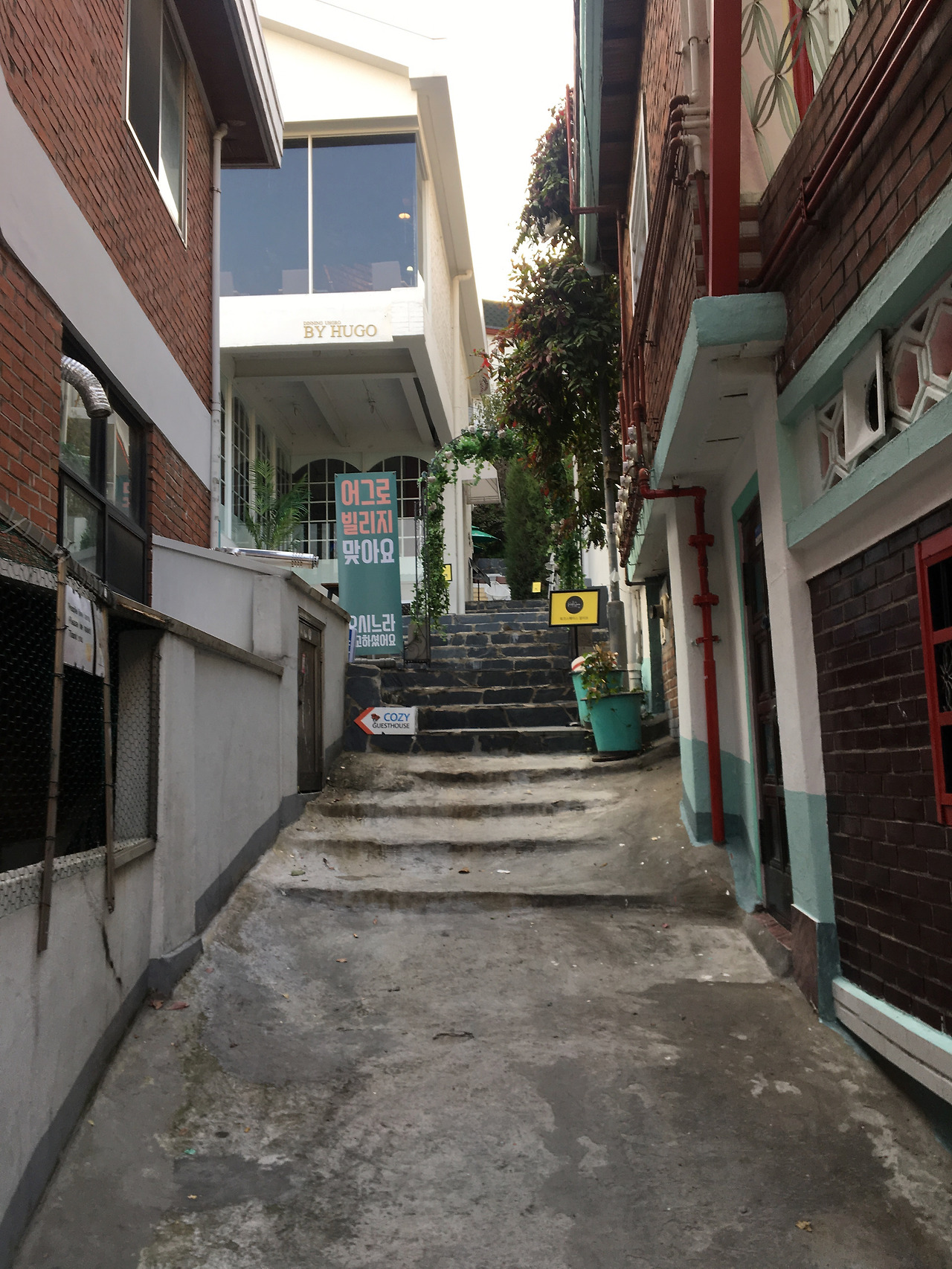 차가 다닐 수 있는 골목에서 사람들만 보행이 가능한 좁은 골목을 돌아 들어가니 문이나 담으로 구분지어져 있진 않지만 다른 세계로 들어가게 되는 것만 같았다. 저 계단부터 시작이다.