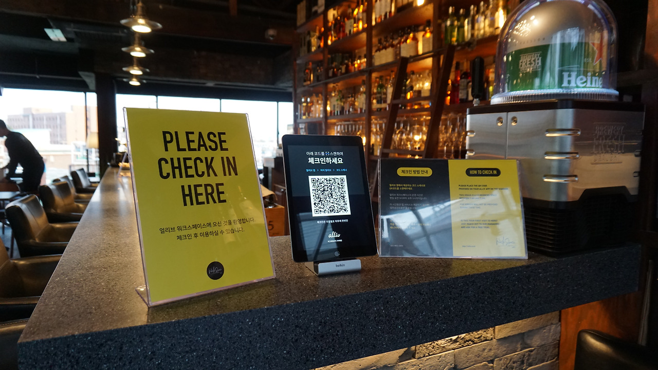 얼리브 어플리케이션을 이용해 QR코드를 스캔해서 쉽게 진행할 수 있다. 중앙에 테블릿PC에 표시된 QR코드를 스캔하면, '체크인완료'라는 문구가 뜬다. 아주 간단하다. 문의사항이 있거나 사용에 어려움이 있어 도움이 필요하면 상주하고 있는 얼리브 매니저에게 바로 문의하시면 된다.
