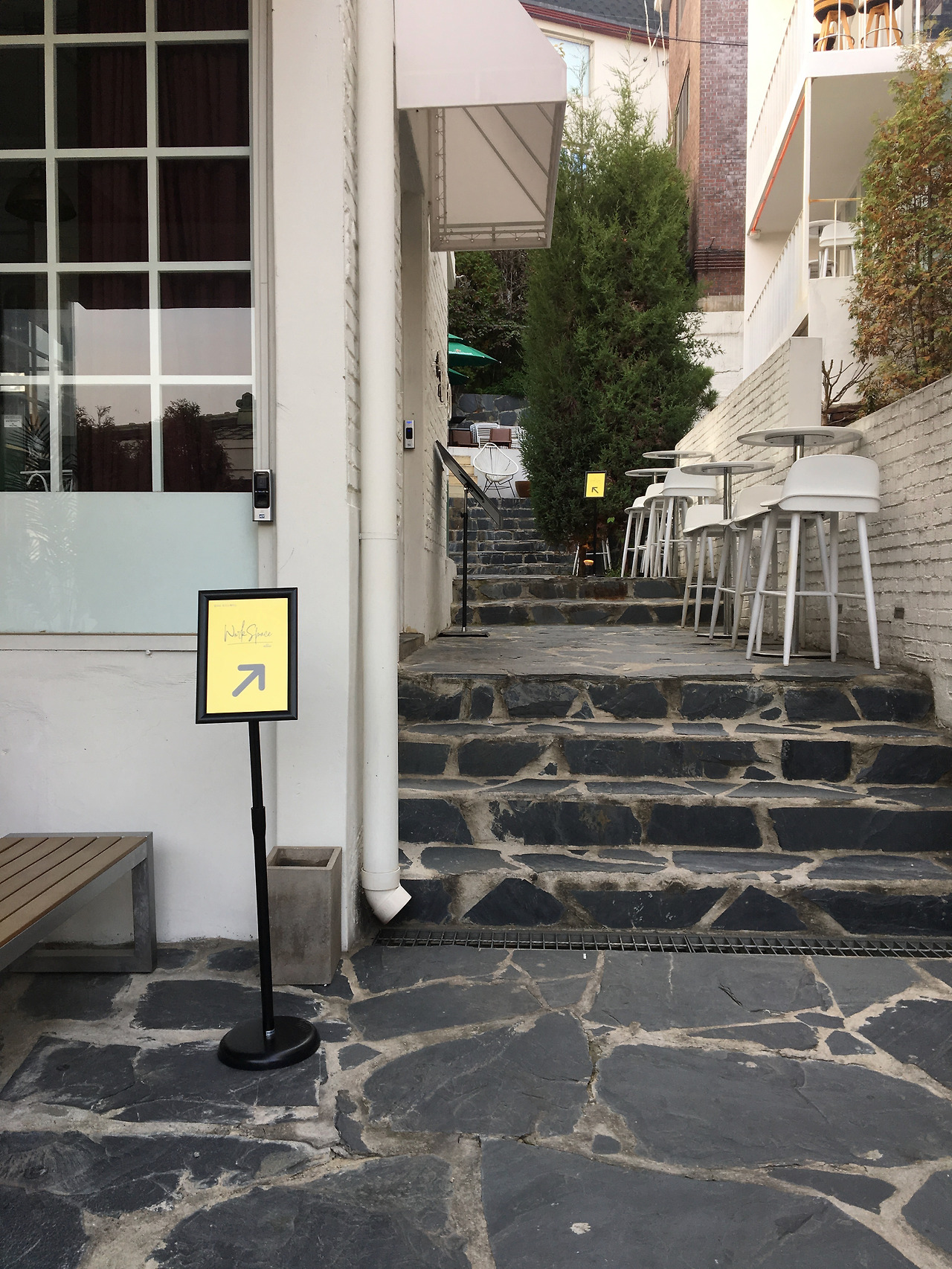 엄청 언덕을 오른 거 같이 느껴지지만, 이태원역에서 불과 5분여 거리에 있다. 왜 이렇게 골목으로 들어가야하지 라는 생각이 들 때쯤 반가운 손짓(안내 배너)이 보인다.