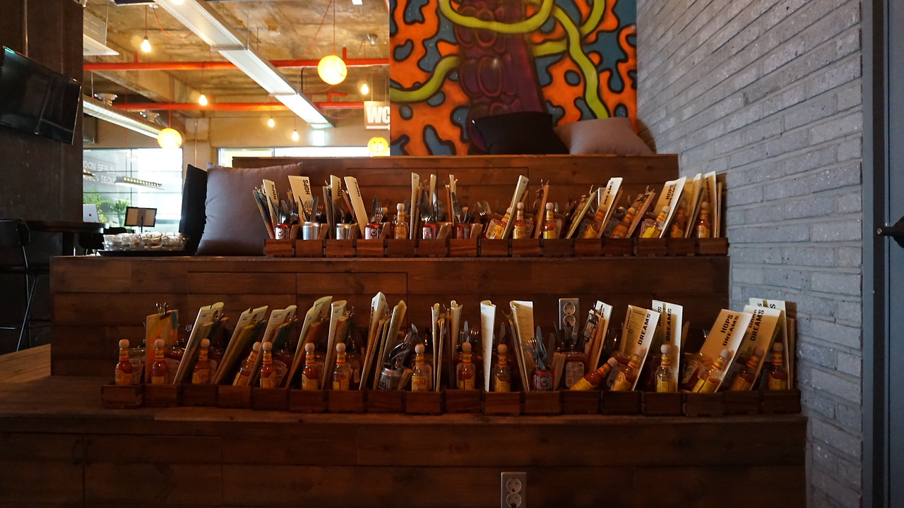 이건 우리끼리 얘기였는데, 어그로빌리지는 소스통이 3개씩 있는 브루독보다는 힘이 덜 든다고 한다.