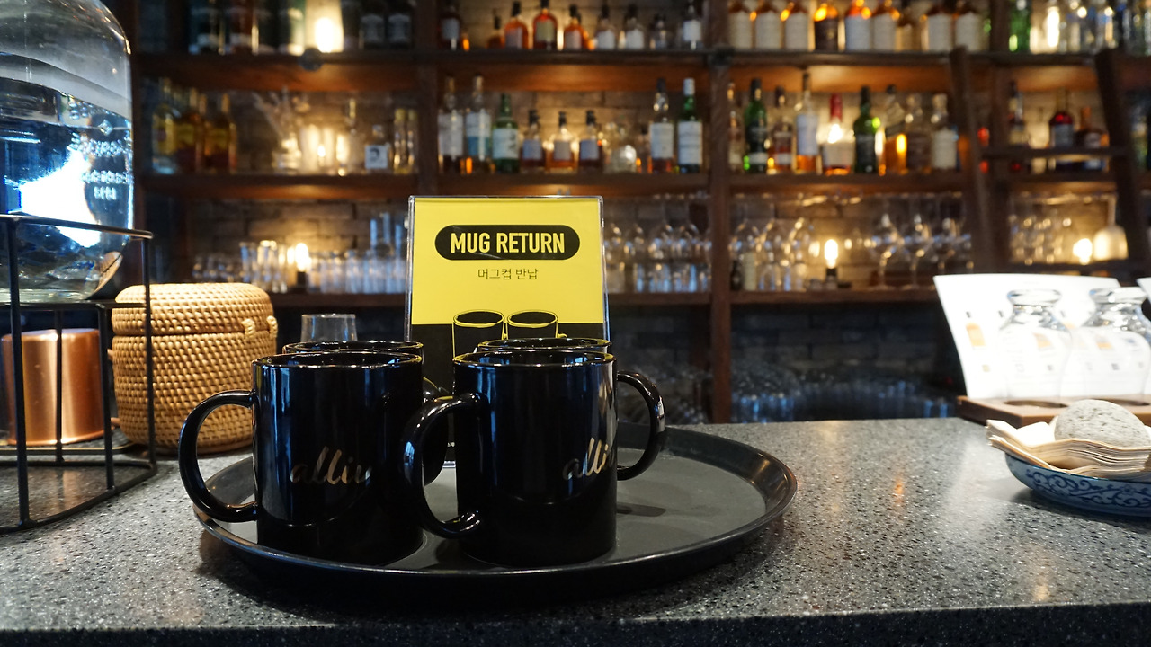 사용하신 머그컵은 반납(RETURN) 쟁반 위에 올려놓으시면 된다.