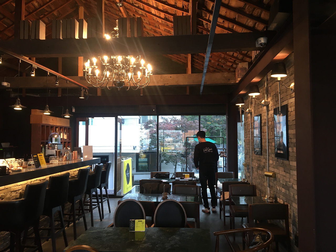 마당에서 들어온 방향 왼쪽 건물(바이휴고가 위치한) 2층이다. 라운지바 알곤퀸이던 공간이 주간에는 얼리브 워크스페이스다.