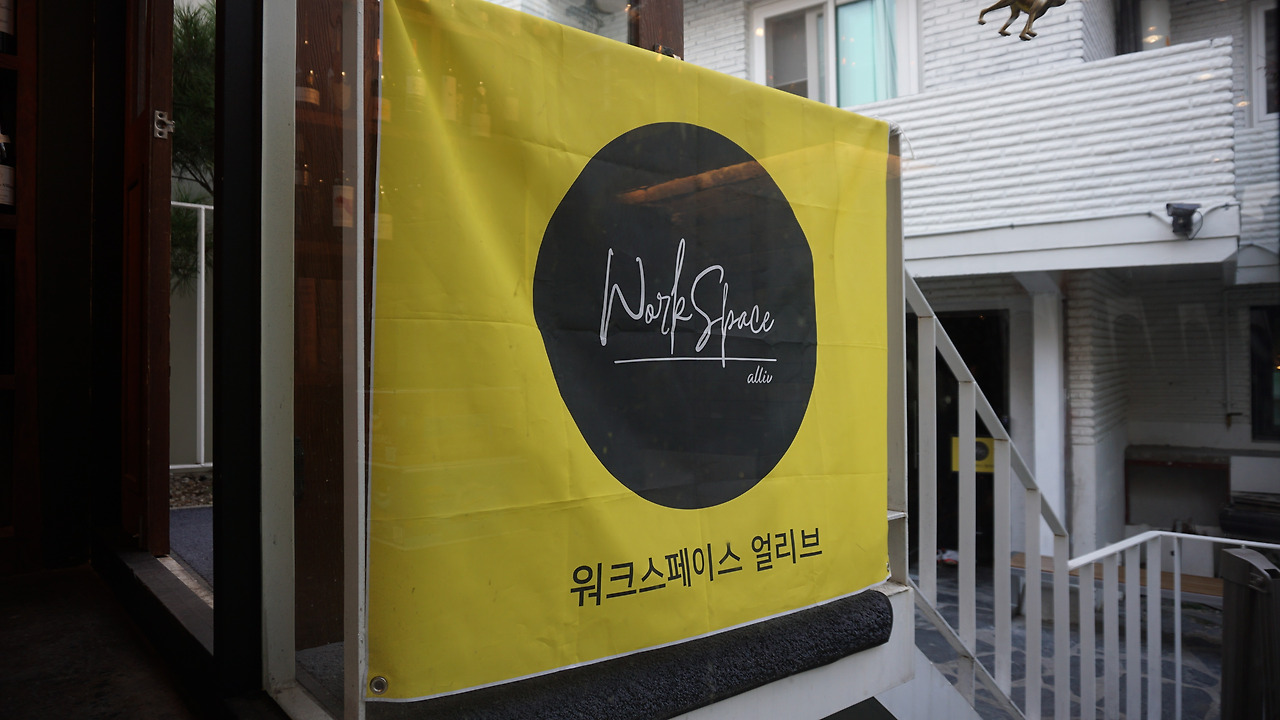 워크스페이스임을 알려주는 현수막, 방향을 잃지 않고 찾아갈 수 있었다.