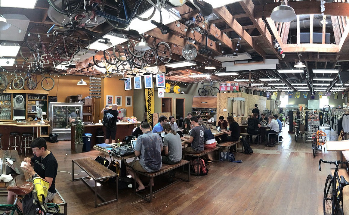 "오리지널 신제품과 자전거 관련 상품, 빈티지 주문형 자전거와 맥주 서버가 부착된 자전거 등 개성적인 자전거가 넓은 가게 안에 늘어서 있다. 그리고 자전거 판매 뿐만 아니라 바에서는 포틀랜드 로스터 ‘크랜크 커피(Crank Coffee)’와 ‘워터애비뉴(Water Avenue)’의 커피, 10여 종 이상의 수제맥주를 마실 수 있다. 가게 안쪽에는 로드바이크 프레임 빌더인 ‘제이 브라이언트’의 공방도 있어서 운이 좋으면 작업하는 풍경을 볼 수 있다. 플로어에서는 음악 공연 등 다양한 이벤트가 열리기도 한다. 자전거와 그 주변 문화 모두가 가게 안에 있는 새로운 스타일의 자전거 가게다."***
