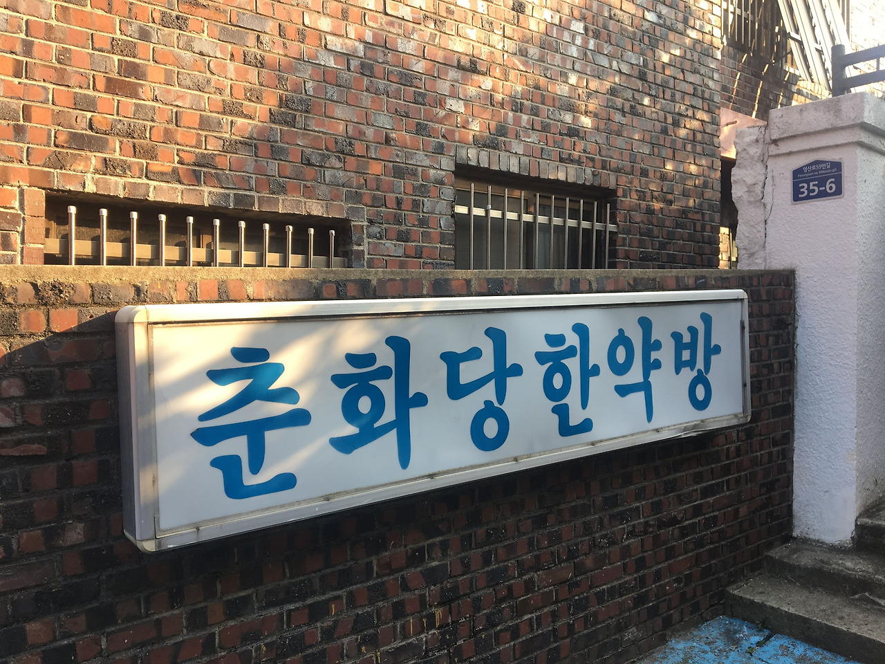 춘화당한약방의 흔적은 간판과 카페 내부 약수납장으로 남아 있다. ⓒ최성우