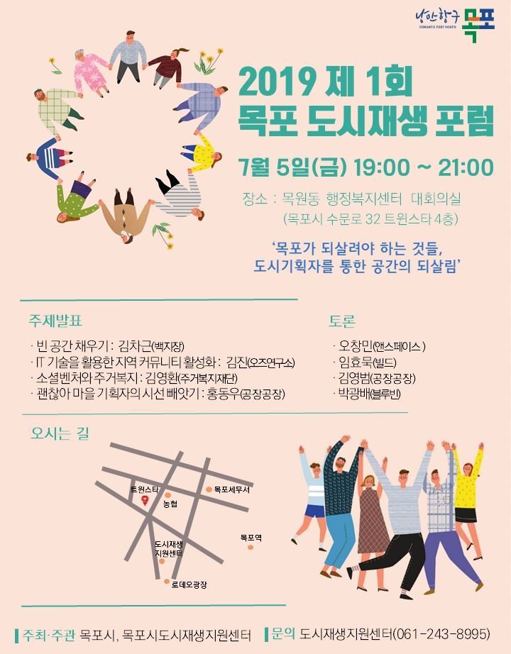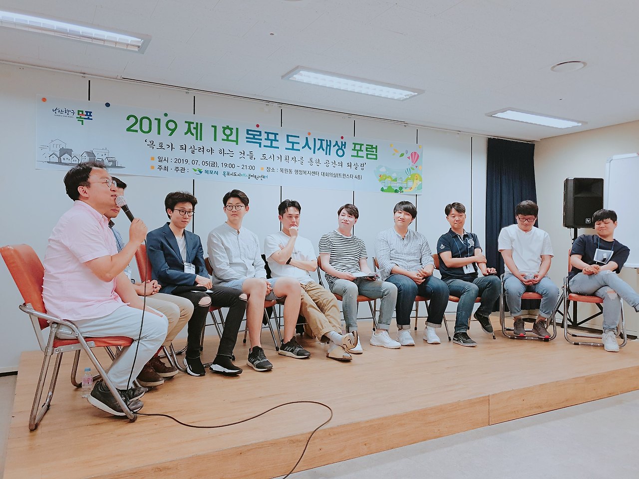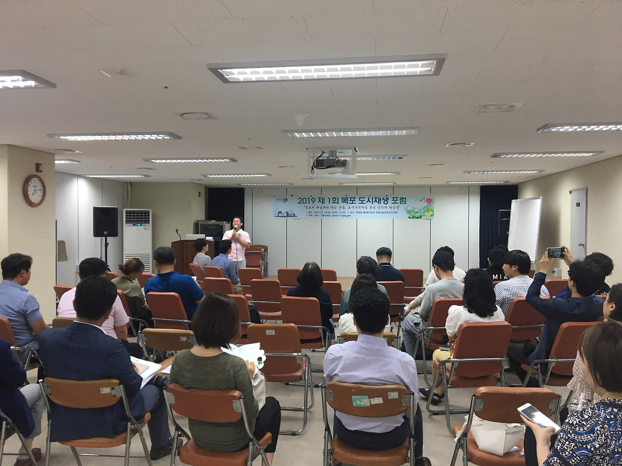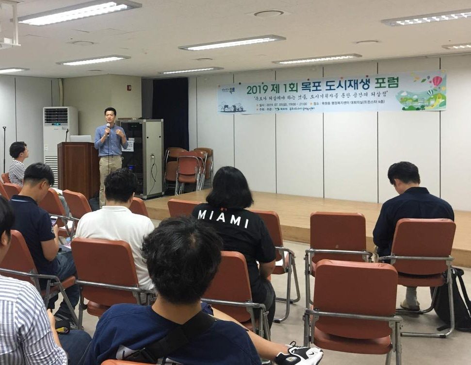 목포에 계신 주민, 활동가와 전국 각지에서 온 작은도시기획자들과의 만남을 위해 목포시 도시재생지원센터에서 첫 번째 목포도시재생포럼에 자리를 마련해주셨다. 전은호 센터장의 오프닝으로 2019년 1회 목포 도시재생포럼을 시작했다. 작은도시기획자들(이하, 작도모) 2019년 이장(대표) 블랭크(건축사사무소) 문승규 대표가 작도모를 소개했다.