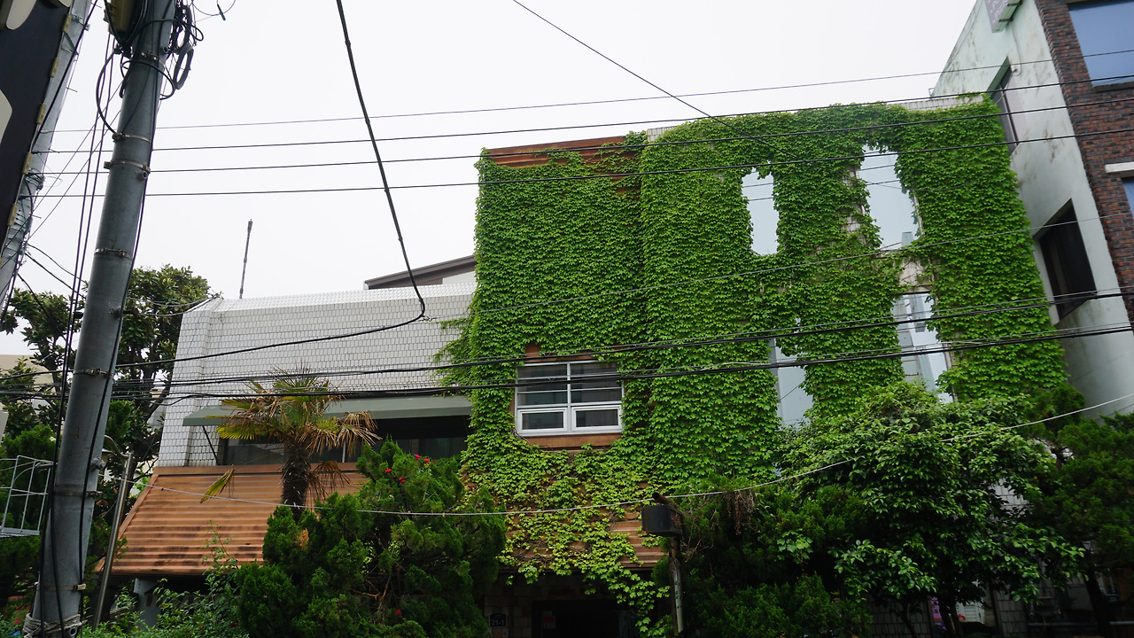 건물을 세운 주인장이 정성껏 가꾸어 온 나무와 꽃, 건물을 뒤덮은 덩쿨 ⓒ최성우