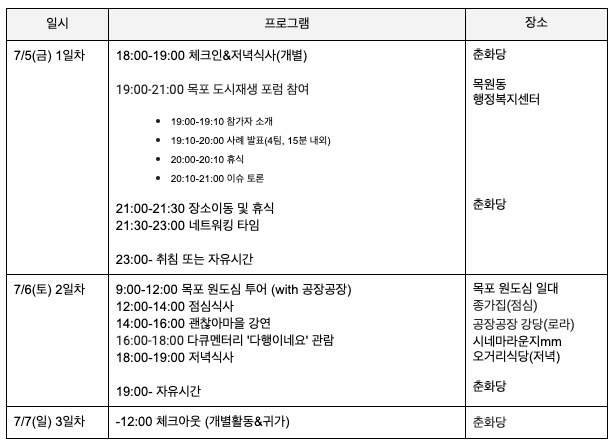 작은도시기획자들 2019년 여름 공동 연수 일정표 ⓒ작은도시기획자들