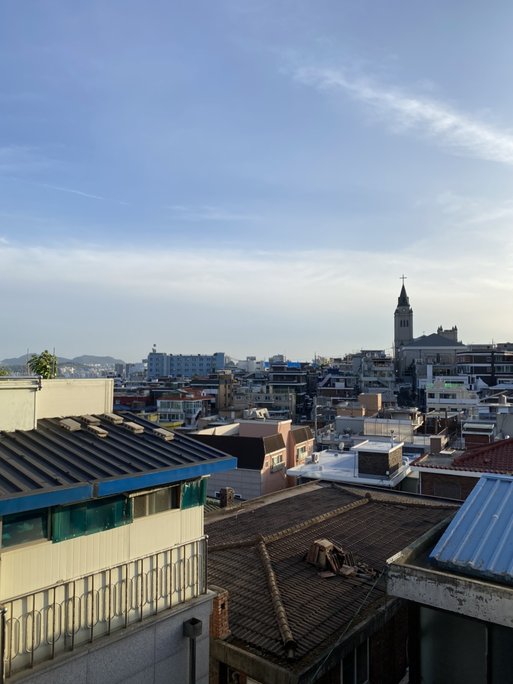 다른 동네에 온 듯한 노출 콘크리트 공간에 확 트인 전망(뷰)가 일품이다.