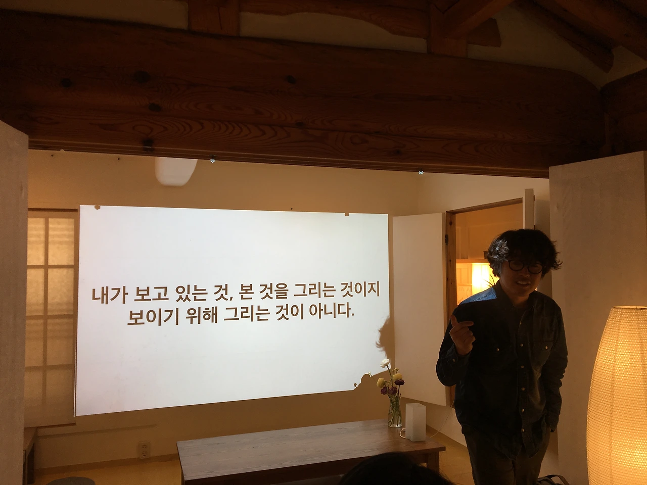 동네 친구 아타를 통해서 '자연스럽게 그리기' 전시가 있다는 소식을 접했다. 그동안 꾸준히 운영해 오시고 계시다는 소식이 참 반가웠다. 이 프로젝트와는 개인적으로도 인연이 있다. 페이스북을 통해 알게 된 재훈쌤(aka. 제롬)과 연남동에서 소프트유니브 등 만들어 가고 계셨던 세계관에 대해서 2시간 여 대화했던 것을 계기로 바로 다음 시작되는 시즌에 참여했다. 2018년 2월과 3월에 걸쳐 북촌의 한옥에서 열렸다. 한옥 곳곳에 자리 잡고 앉아 집안에 있는 사물들, 처마에 앉아 지붕선과 식물이 심긴 화분 등등 도심 한옥에서만 느낄 수 있는 정취와 함께 그릴 수 있는 시간은 깊이 감동으로 남아 있다. (2018.02.20, 27, 03.06, 13)