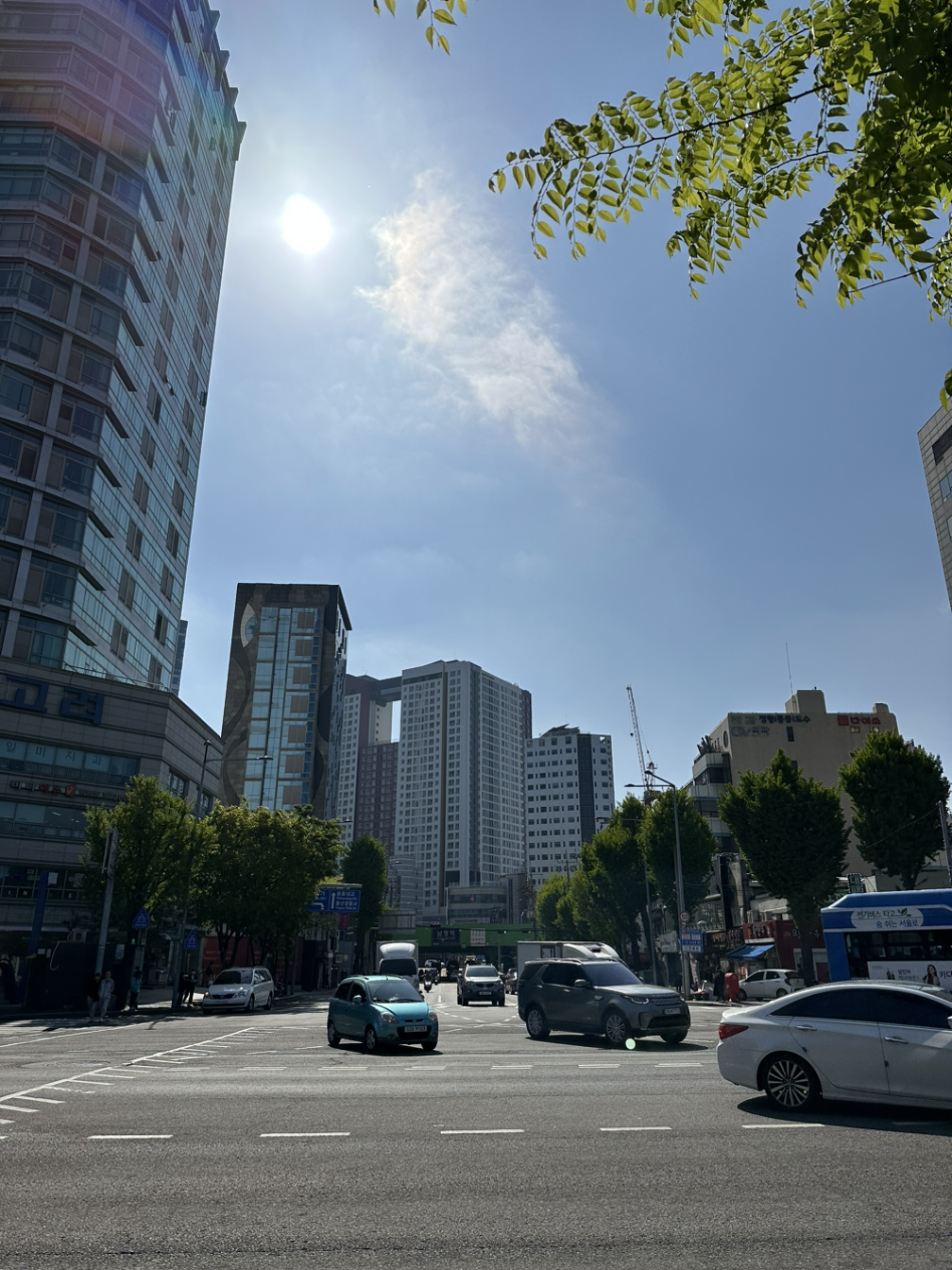 화창한 푸른 하늘과 구름 사이로 햇살이 환하게 세상을 밝히고 있었다.