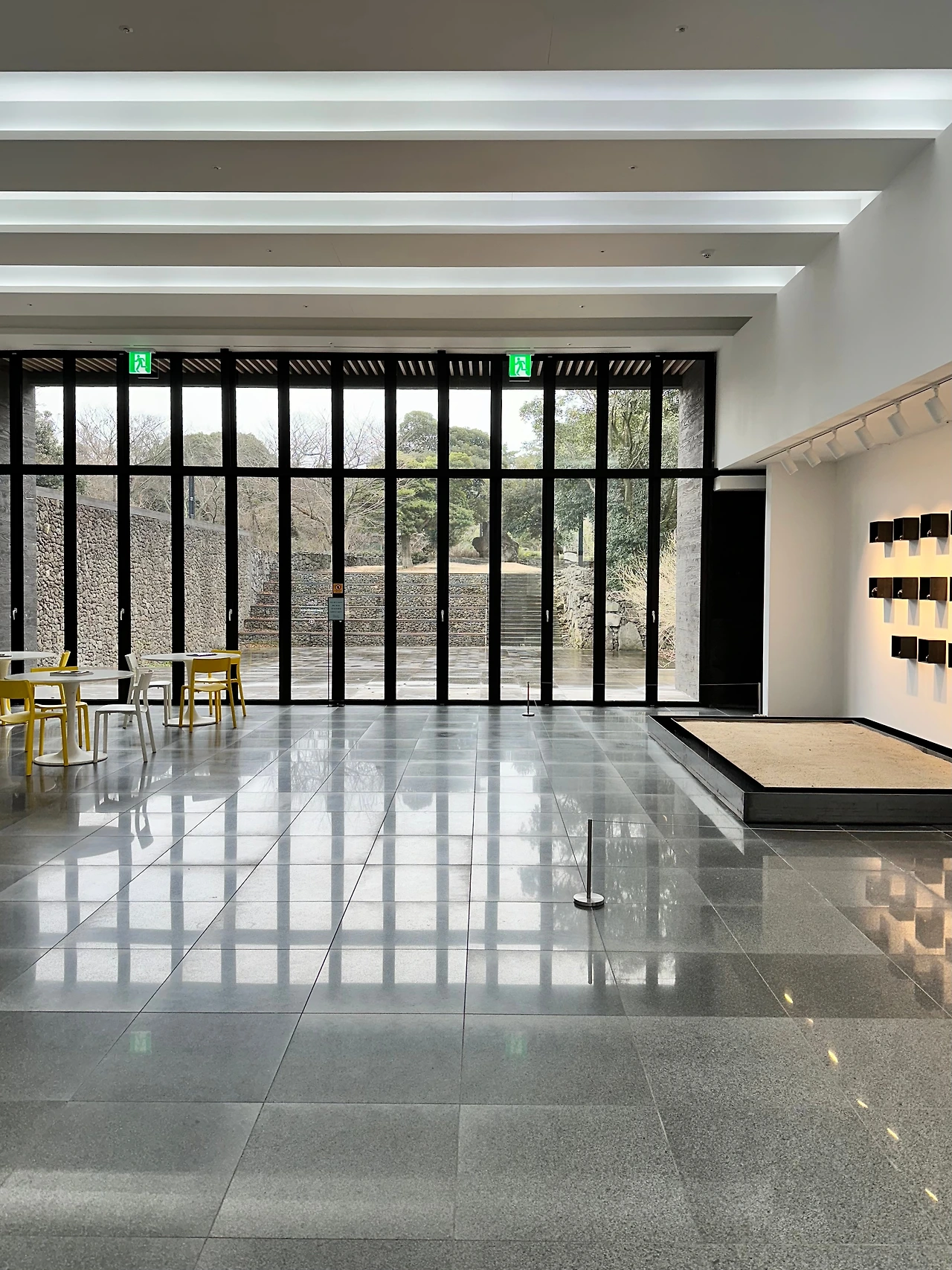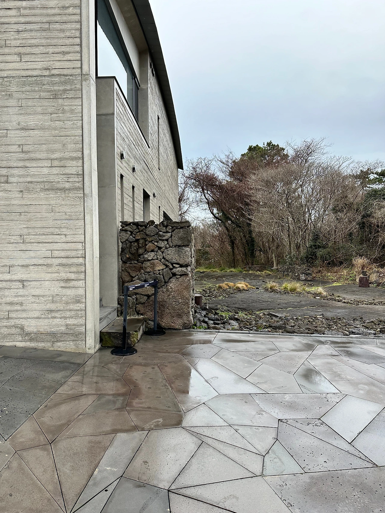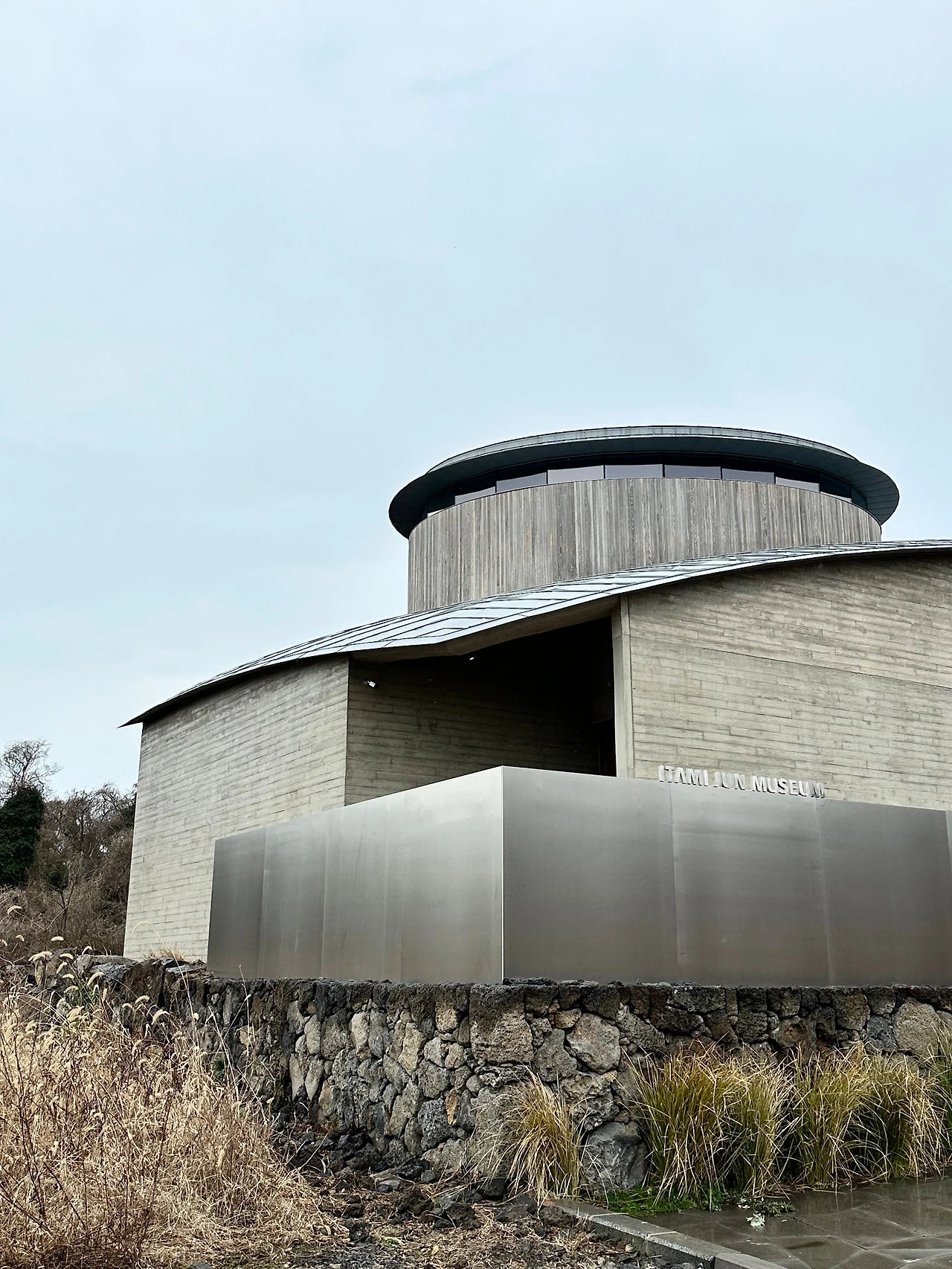 두 분이 전날 수풍석 뮤지엄과 방주교회, 본태미술관을 가셨다고 해서 이타미준뮤지엄(유동룡미술관)이 떠올랐다. 40분여를 달려 도착! 평일이고 비가 오는 가운데임에도 주차된 차가 제법 있었다. 운전하느라 미리 예약하는 걸 깜빡해서 3:30분에 딱 도착해서 그때 정신 차리고 예약을 하려고 했으나, 야속하게 시곗바늘은 31분으로 넘어가 있었다.(디지털이므로 실제론 숫자만 바뀌었다. 문학적 표현이랄까.)