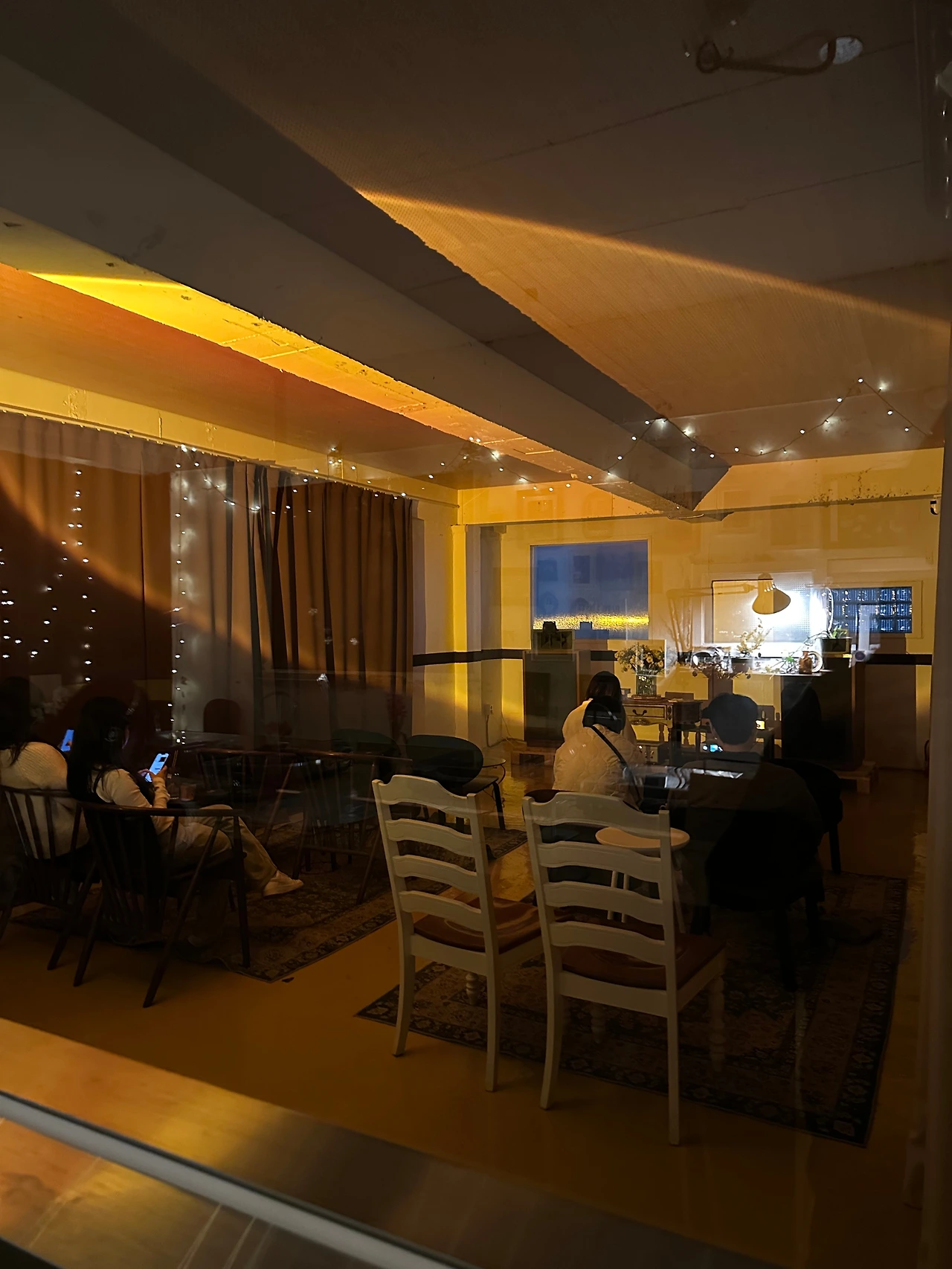 마치 녹음실에 들어가듯 큰 스피커를 향해 앉아 음악 감상중인 사람들을 바라보니