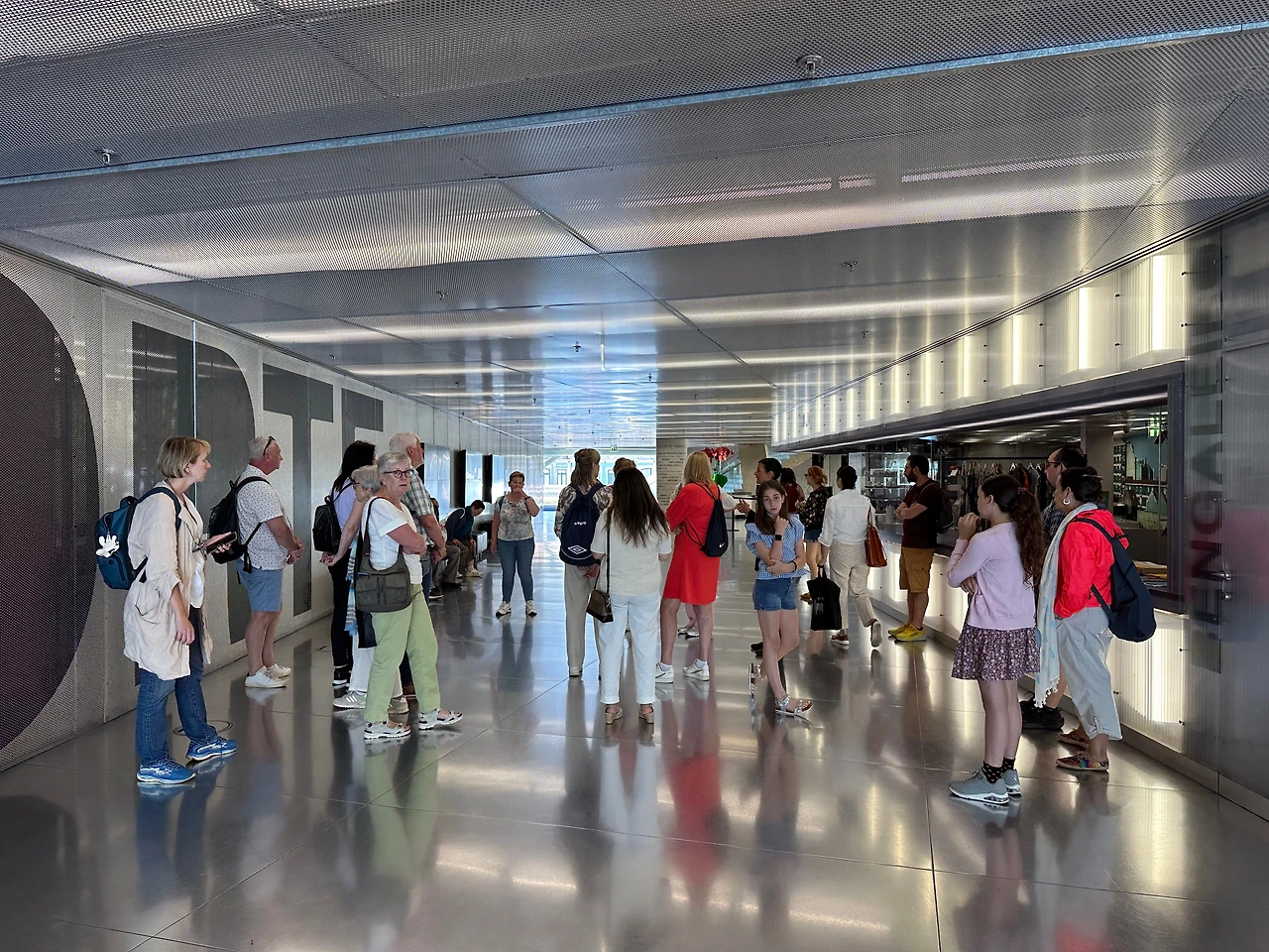 조금 일찍 도착해 건축물 앞 광장에서 스케이트보드를 타는 사람을 살짝 지켜보며 주변을 돌아보다가 마치 우주선에서 출입구가 내려온 듯한 계단을 따라 내부로 들었다. 계단 옆에도 출입문이 있는데, 엘리베이터를 통해 주차장과 공연홀로 바로 진입하는 경우에만 사용가능했다. 티켓 부스에 가서 온라인 예매 확인서를 보여주며, 발권을 해야 하는지 물었다. 별도의 발권은 하지 않아도 되고, 투어가 시작되면 QR코드로 확인만 하면 된다고 했다. 종이 티켓 사용을 지양하는 것 같았다.
