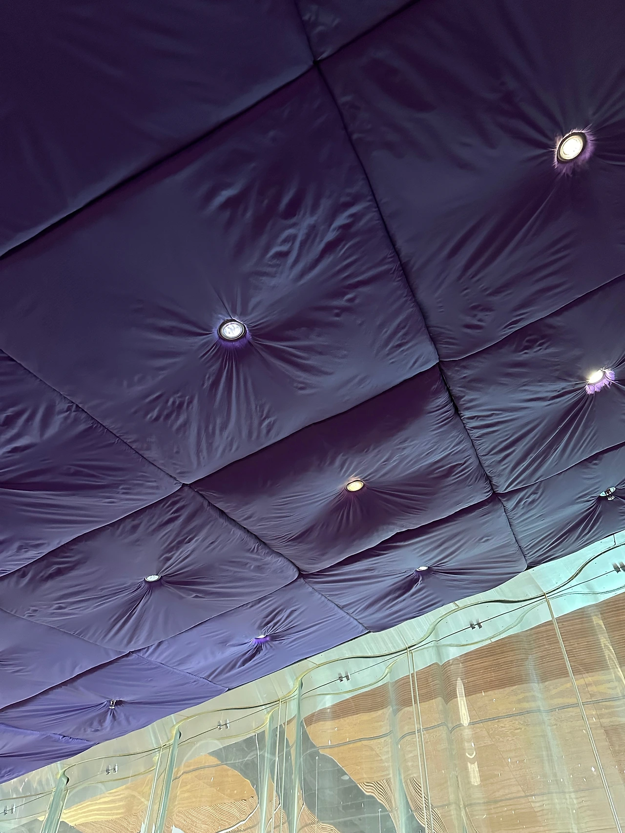 보라색 공간은 다소 차분한 분위기를 조성한다. 이 공간은 커튼을 통해 차단되지 않고 대공연장과 시각적 연결이 유지되도록 설계됐다. 공연 중에나 리허설 중에나 언제나 바라볼 수 있다. 현장의 소리도 스피커를 통해 전달이 되는데, 소리에 반응해 자유롭게 활동하고 대화할 수 있도록 하기 위함이다. 별빛과 같은 느낌의 조을 사용해 특별한 분위기까지 만들어 주는 매력적인 공간이다.