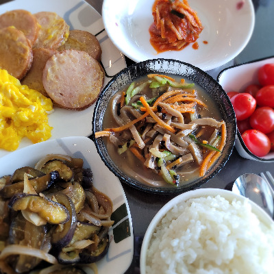밥과 반찬(햄과 계란 등),