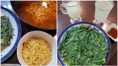 부추전, 라면, 막걸리