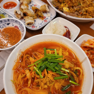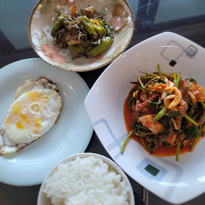 꽈리고추 멸치볶음, 오징어 미나리 무침, 계란프라이