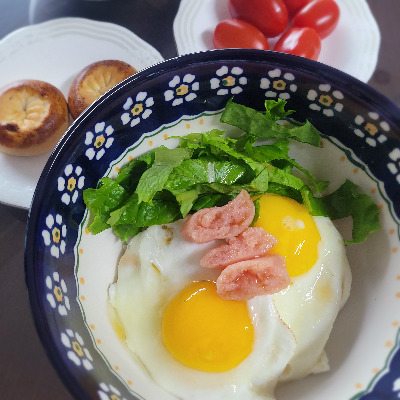 *명란젓+계란프라이+상추+참기름 간장 계란밥