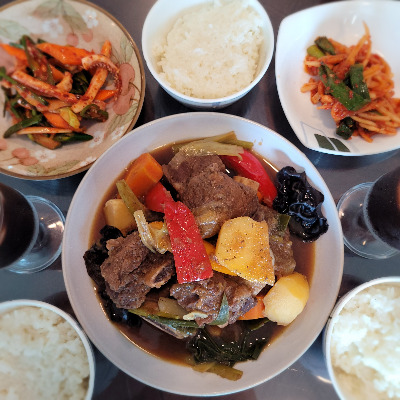 밥과 반찬(소갈비찜 등)