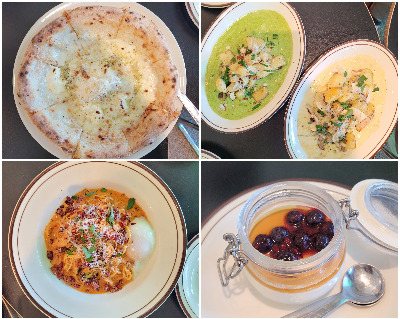 *시금치 페스토 크림 뇨끼, 트러플 크림 뇨끼, 콰트로 치즈 피자, 스파이시 로제 파스타, 바게트, 밀크 푸딩