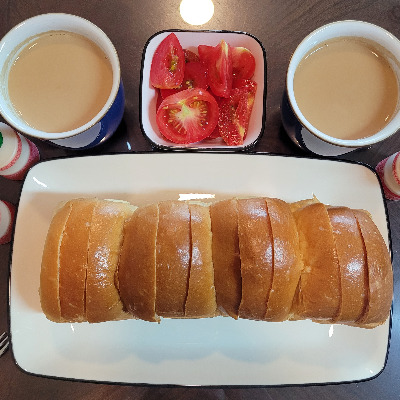 후레쉬크림 샌드 빵, 절인 토마토, 화이트 아메리카노, 요구르트