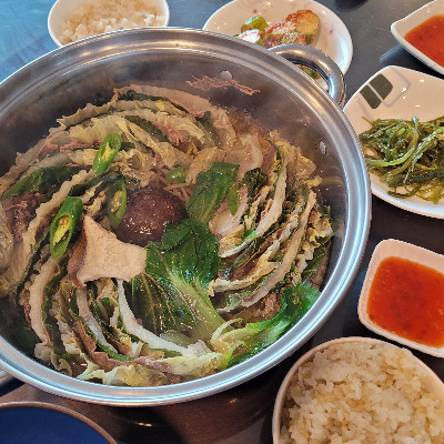 밀푀유 나베, 오이무침, 미역 줄기 볶음