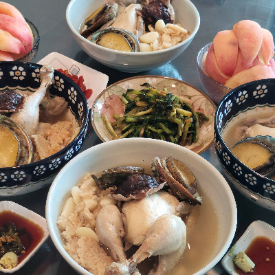 - 통마늘, 활전복, 표고버섯, 누룽지(취향껏), 소금 넣고 5분-10분 더 끓인다.