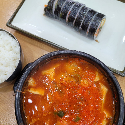 간다, 단탄지 점심: 치즈 김밥 1/2, 순두부찌개
