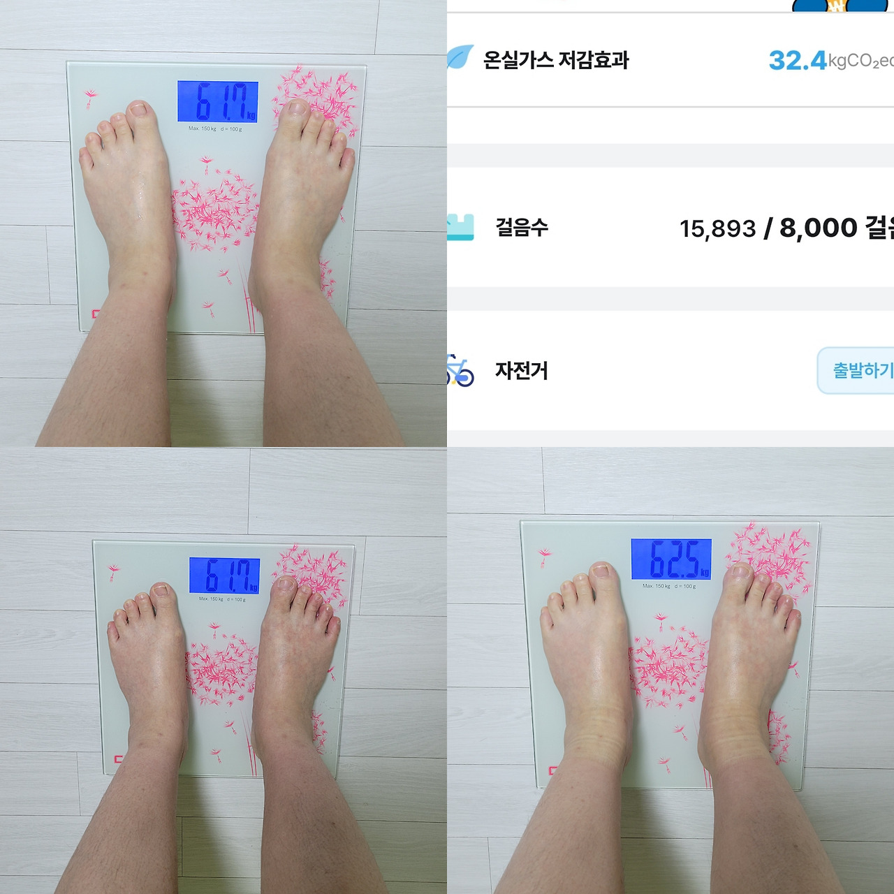 69.5kg에서 62kg까지는 순조롭게 체중 감소했다. 더는 빠지지 않는 것은 이 체형이 나를 위한 것이기 때문은 아닐까, 하는 신비로운 상상.
