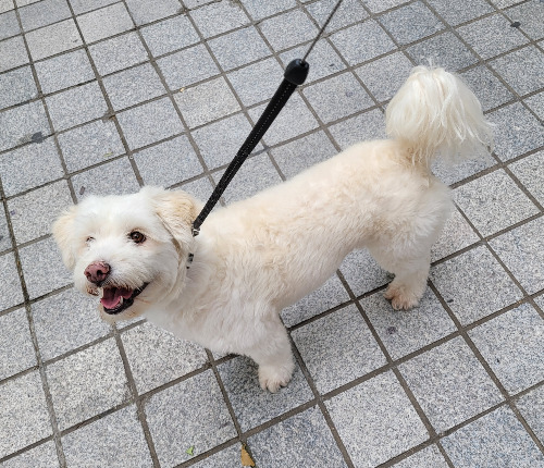 뜨거운 비닐하우스 안에 갇혀 있는 것 마냥 숨 쉬는 것조차 버겁게 했던 무더운 더위를 서서히 물러나게 하는 9월의 비였다. 9월의 비는 급하지 않고, 요란하지 않았다. 더위야, 이만 물러가렴, 하고 잘 어르고 달래고 있었다. 더위에 지쳐 한껏 짜증을 내듯 퍼붓는 성난 비에 발이 흠뻑 젖거나 하루 종일 걸어도 바지에 빗물이 튈 것 같지 않은 수줍은 비가 내리고 있었다. 나는 커다란 우산을 챙겨 들고 개띠개와 7시 즈음 산책을 나갔다. 비가 오든 말든 나가야 하니까, 이것은 하루도 거를 수 없는 몹시도 중차대한 일정이므로.