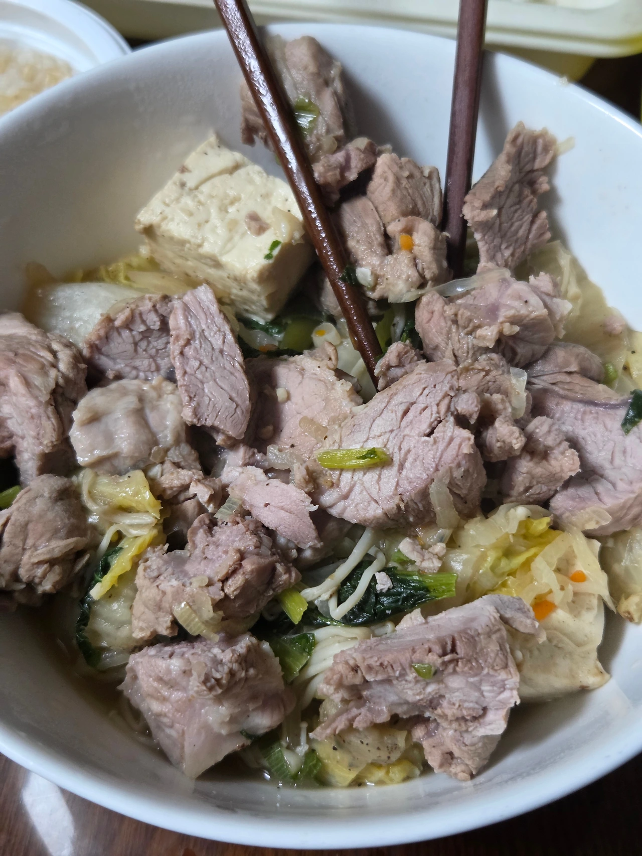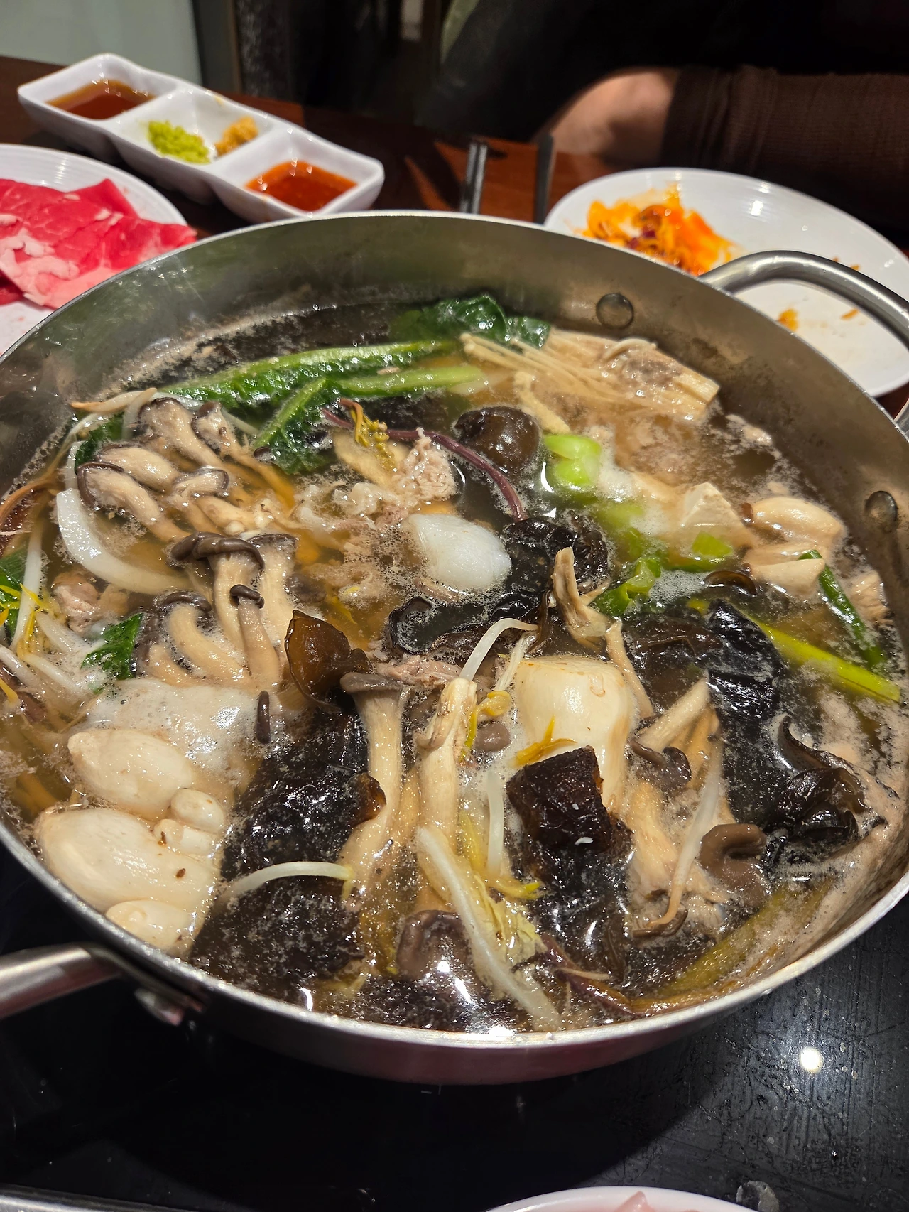 고기와 야채들을 건져서 간장+다진 마늘+고추 소스에 듬뿍 찍어서 허겁지겁 먹었다.