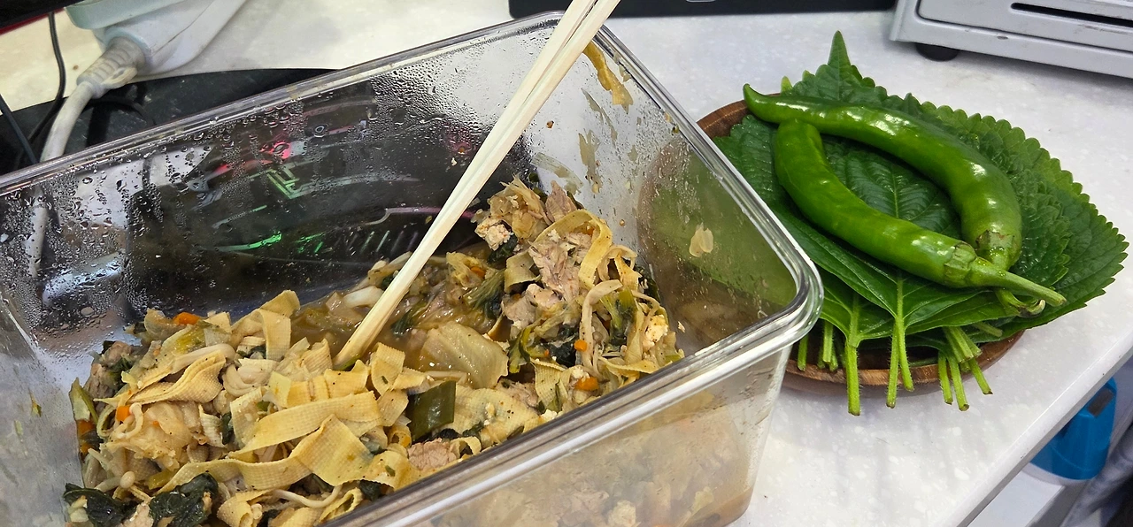 월남쌈을 할 수 있는 생 야채들까지 가져와서 밥 1그릇 양에 넣고 김가루와 비벼 먹었으며...