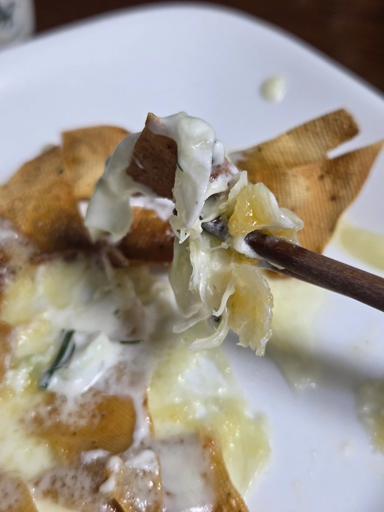 아! 차지키소스 남은 거를 한번 올려서 먹어볼까? 싶어서 차지키소스와도 함께 먹어보고.